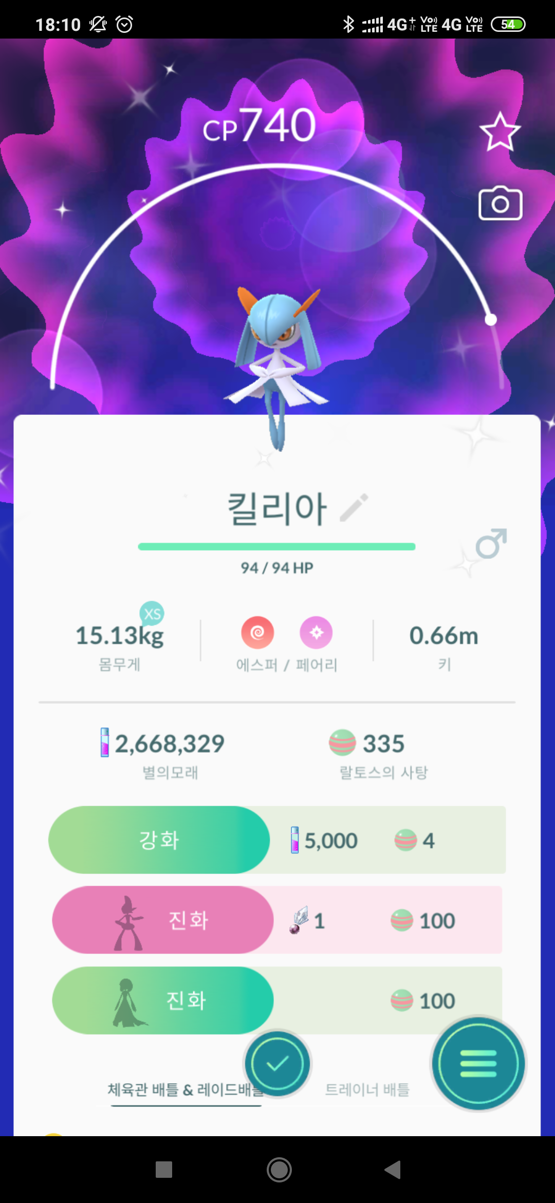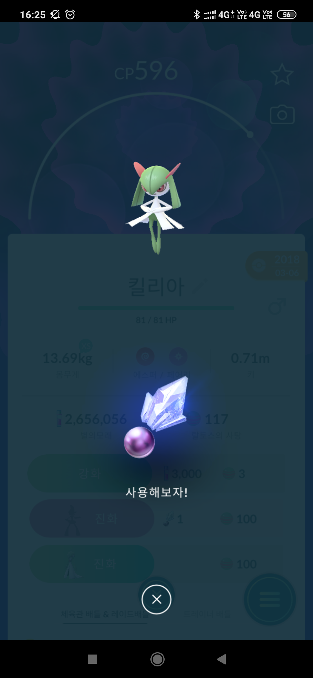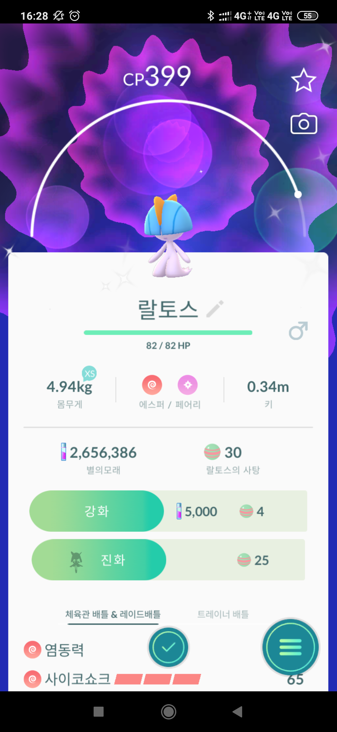 진화 작업을 위한 충분한 랄토스의 사탕과 신오의 돌 필수!