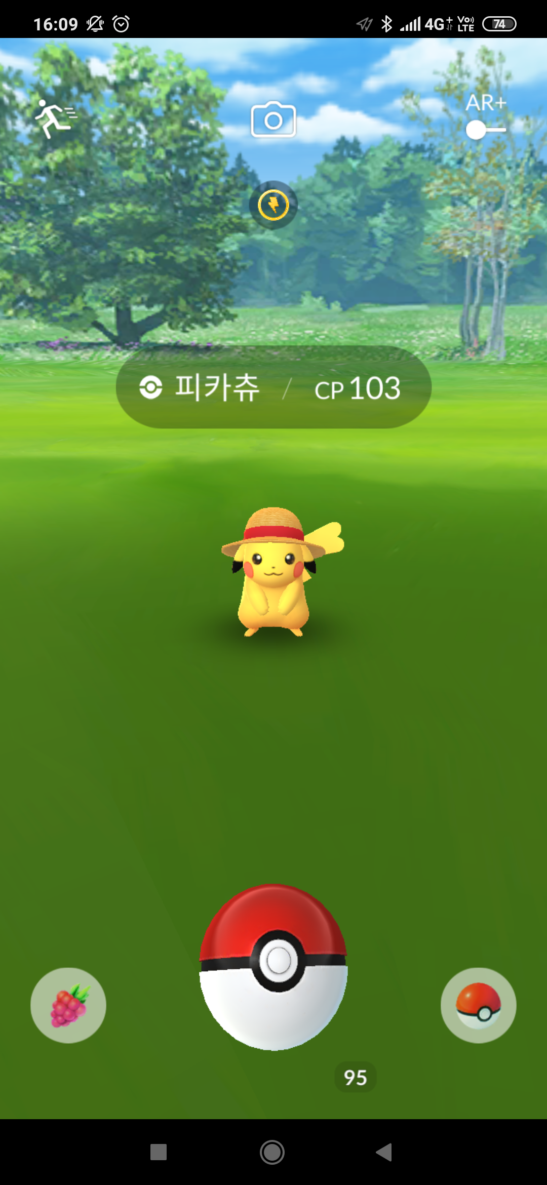 빨간리본 밀짚모자를 쓴 피카츄가 출현