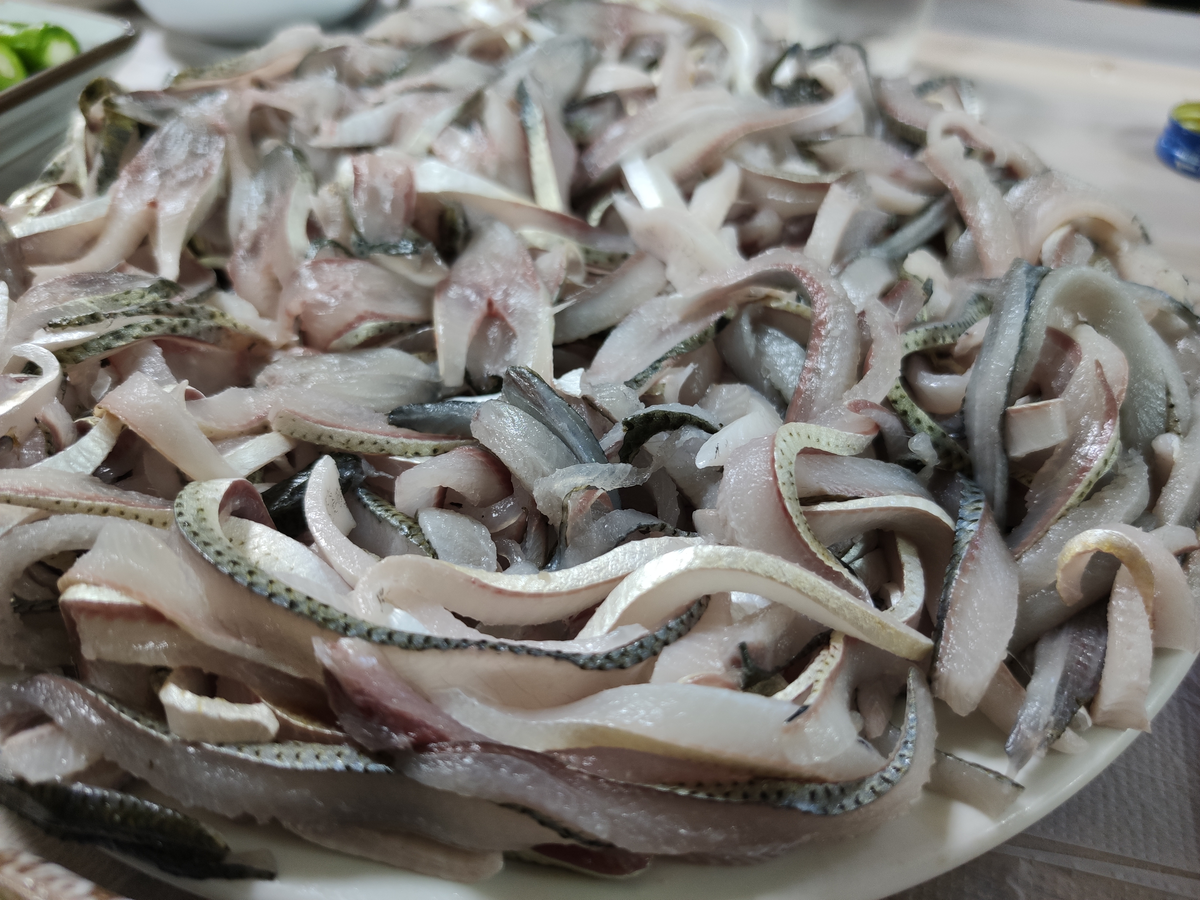 마산 어시장의 어느 횟집에서 전어회를 배부르게 흡입합니다!