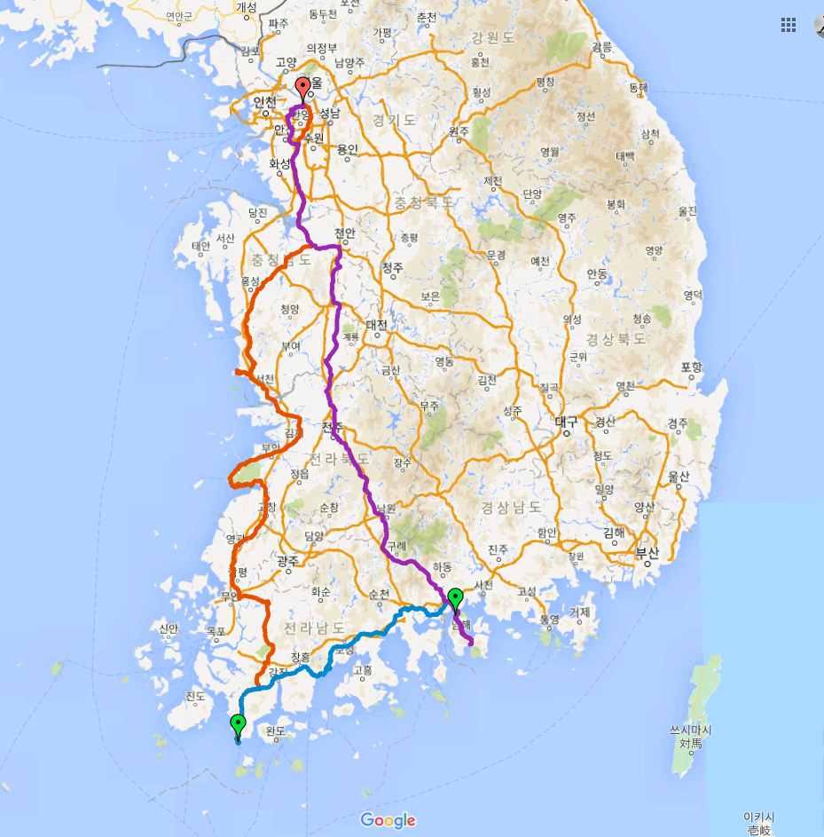 이번 투어의 대략적인 코스는 3박 4일 동안 '서울 → 진해 → 포항 → 양양 → 복귀'