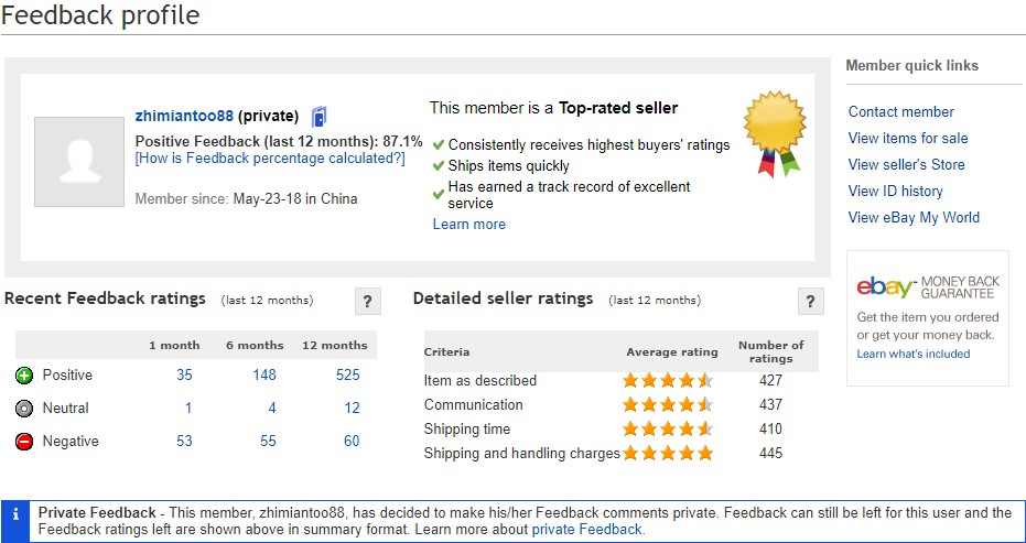 해당 셀러는 최근 한 달 사이에 부정적인 평가를 많이 받았습니다.