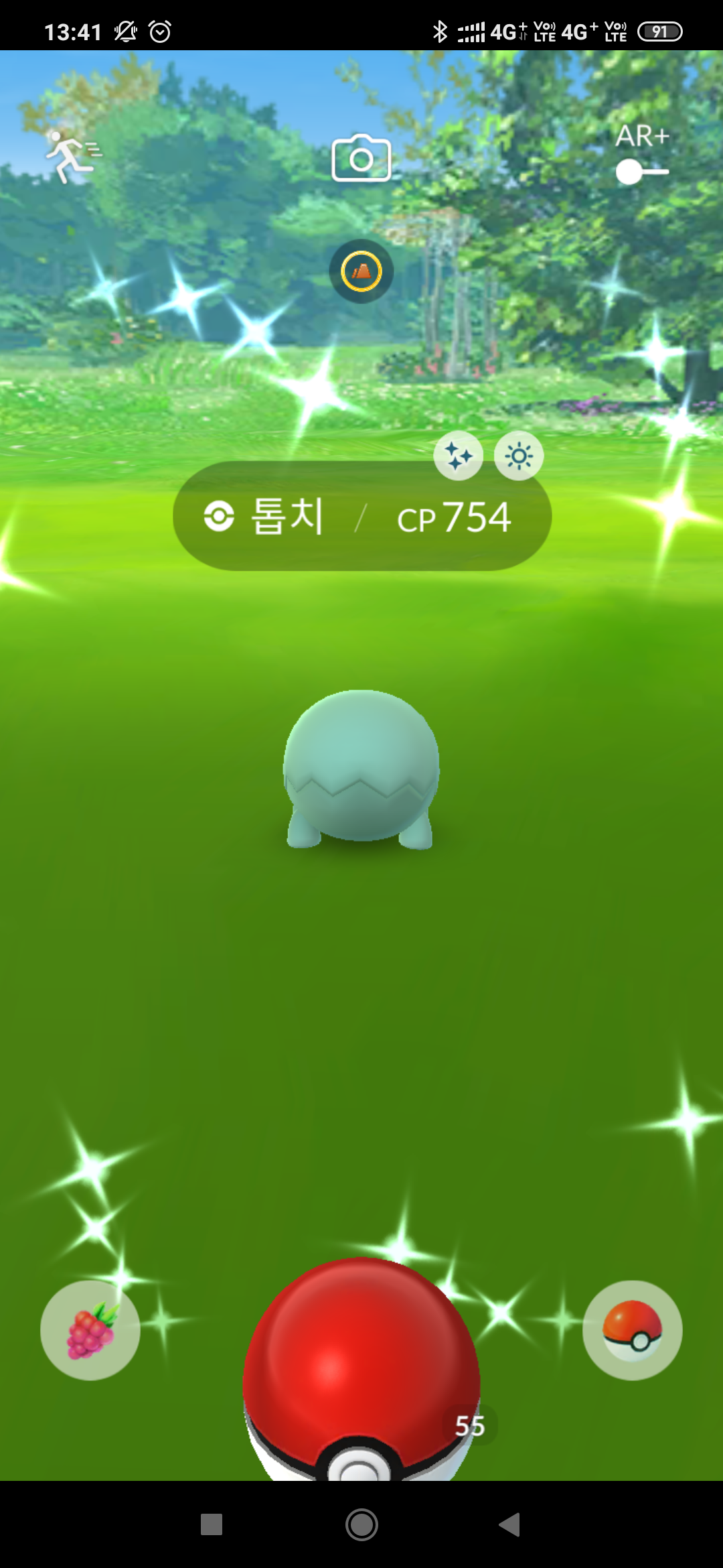 - 이벤트 중에 포켓스톱에서 얻은 2km 알에서 톱치가 부화.