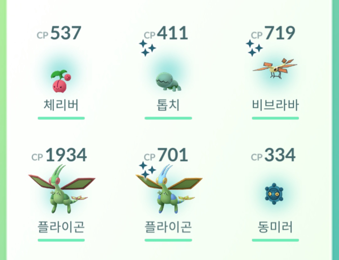 색이 다른 이로치 톱치, 비브라바, 플라이곤 3종세트 완성!