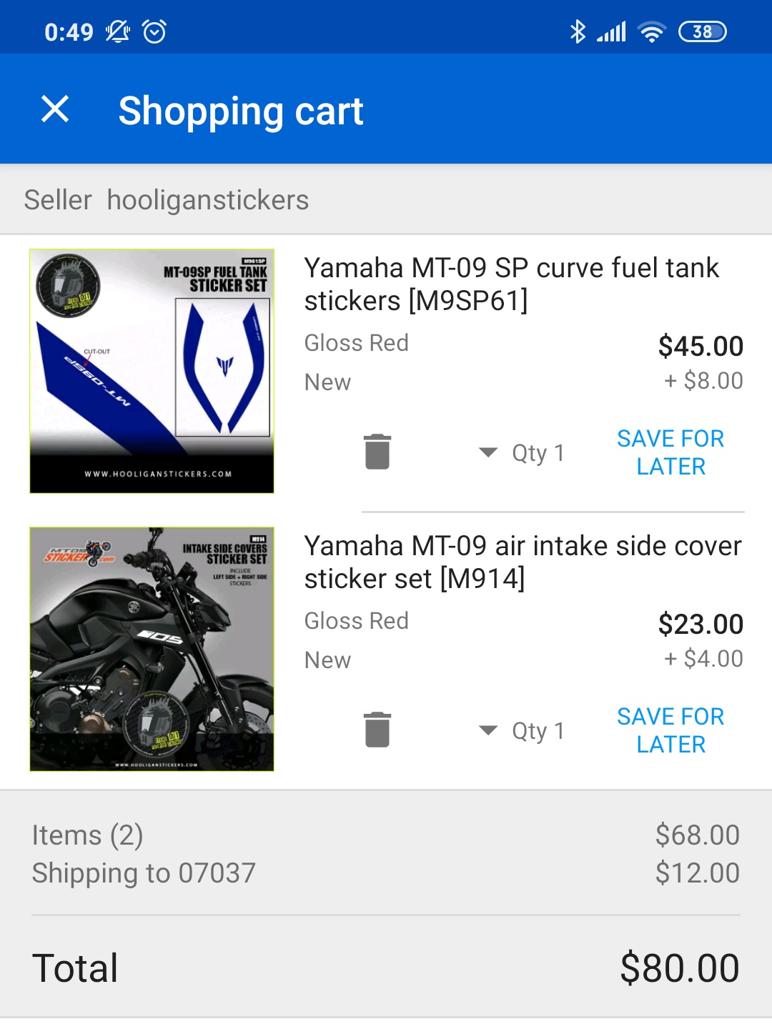 eBay $68.0 / 배송비 $12.0 = $80.0
