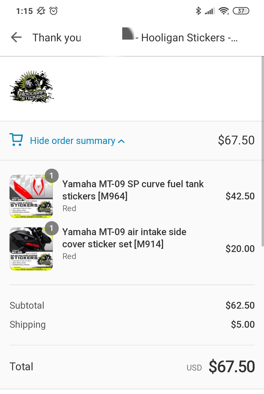 Hooligan Stickers $62.5 / 배송비 $5.0 = $67.5
