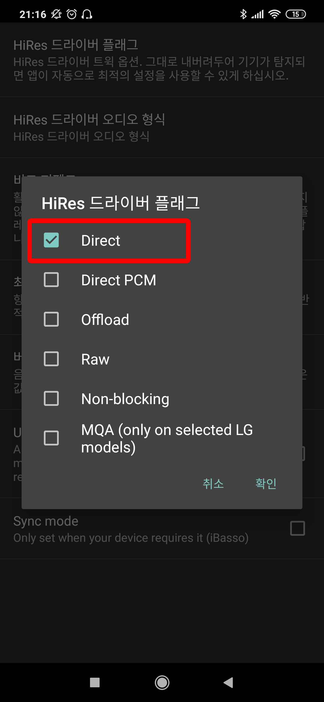 HiRes 드라이버 플래그 → Direct