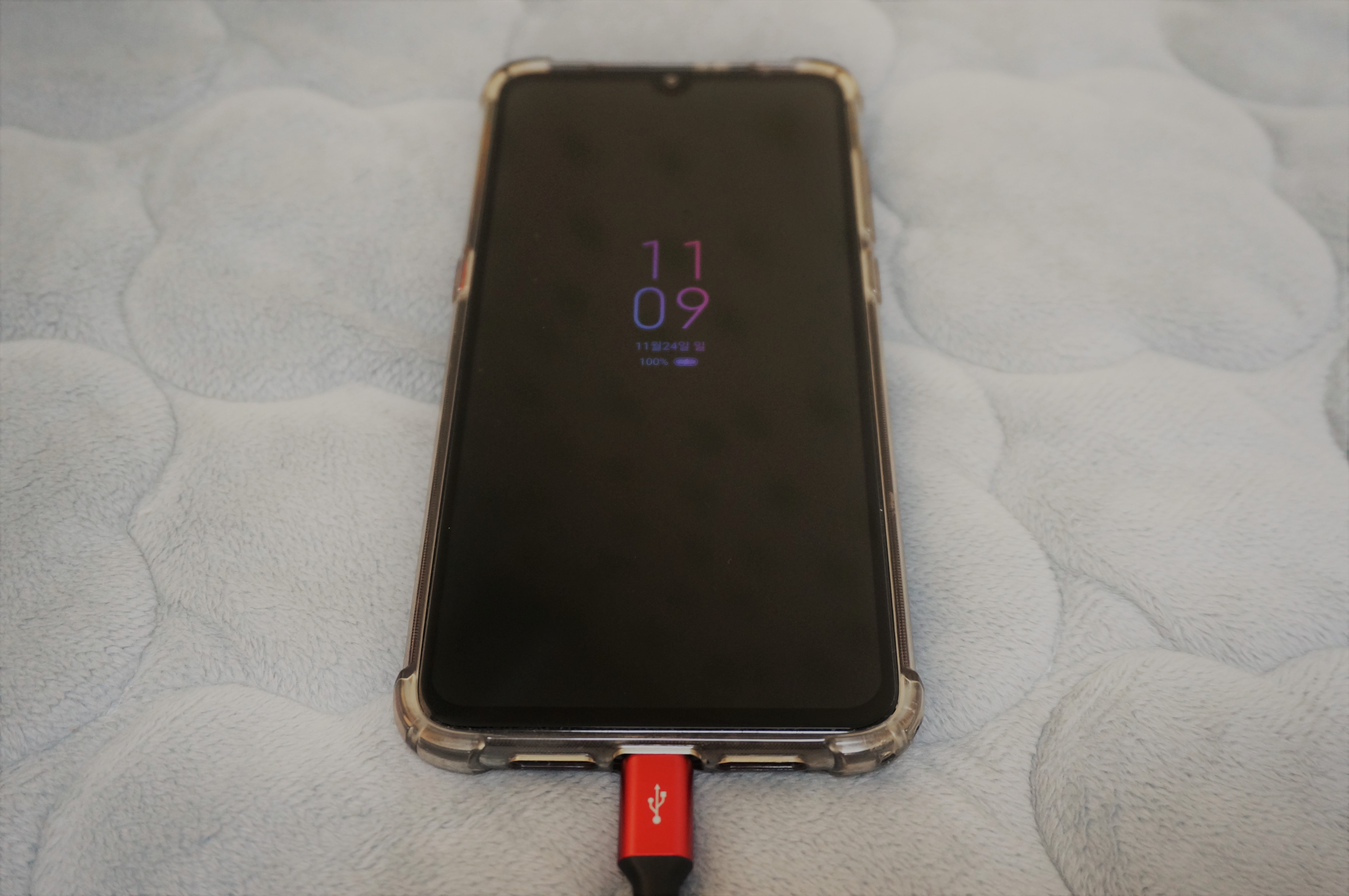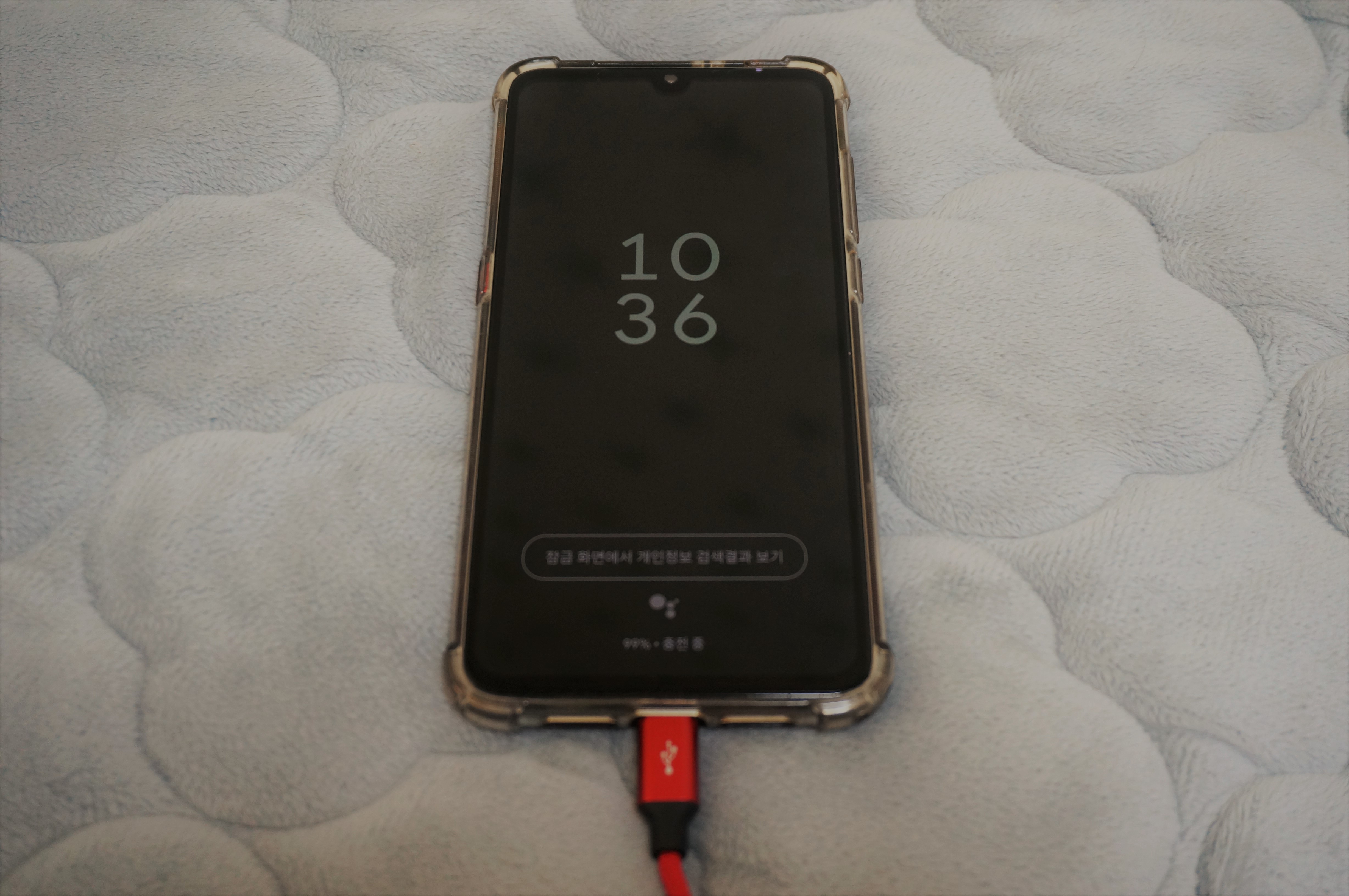 제가 스마트폰에 설정해둔 AOD 화면이 없어졌습니다. (충전시)