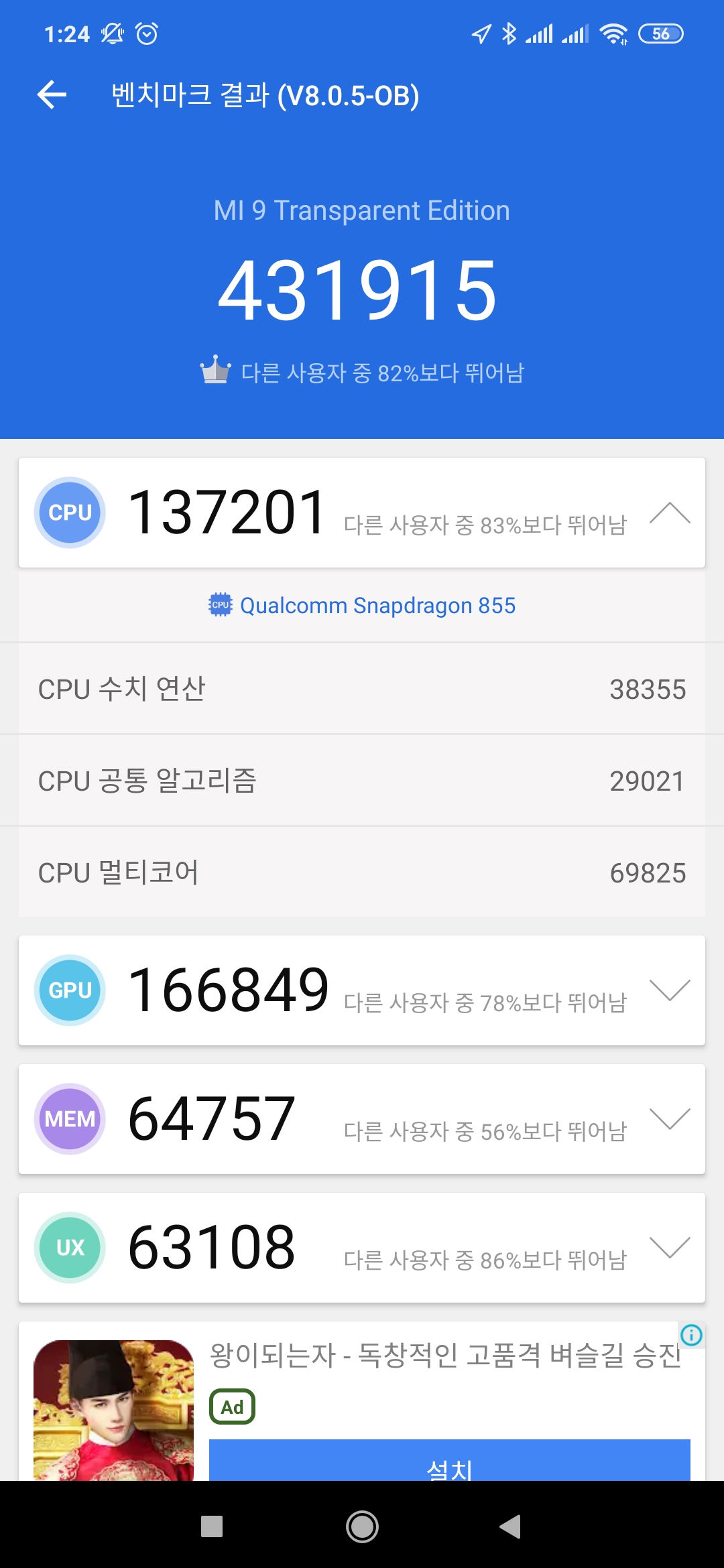 샤오미 스마트폰 미9 안투투 점수 V8.0.5 - 스냅드래곤 855