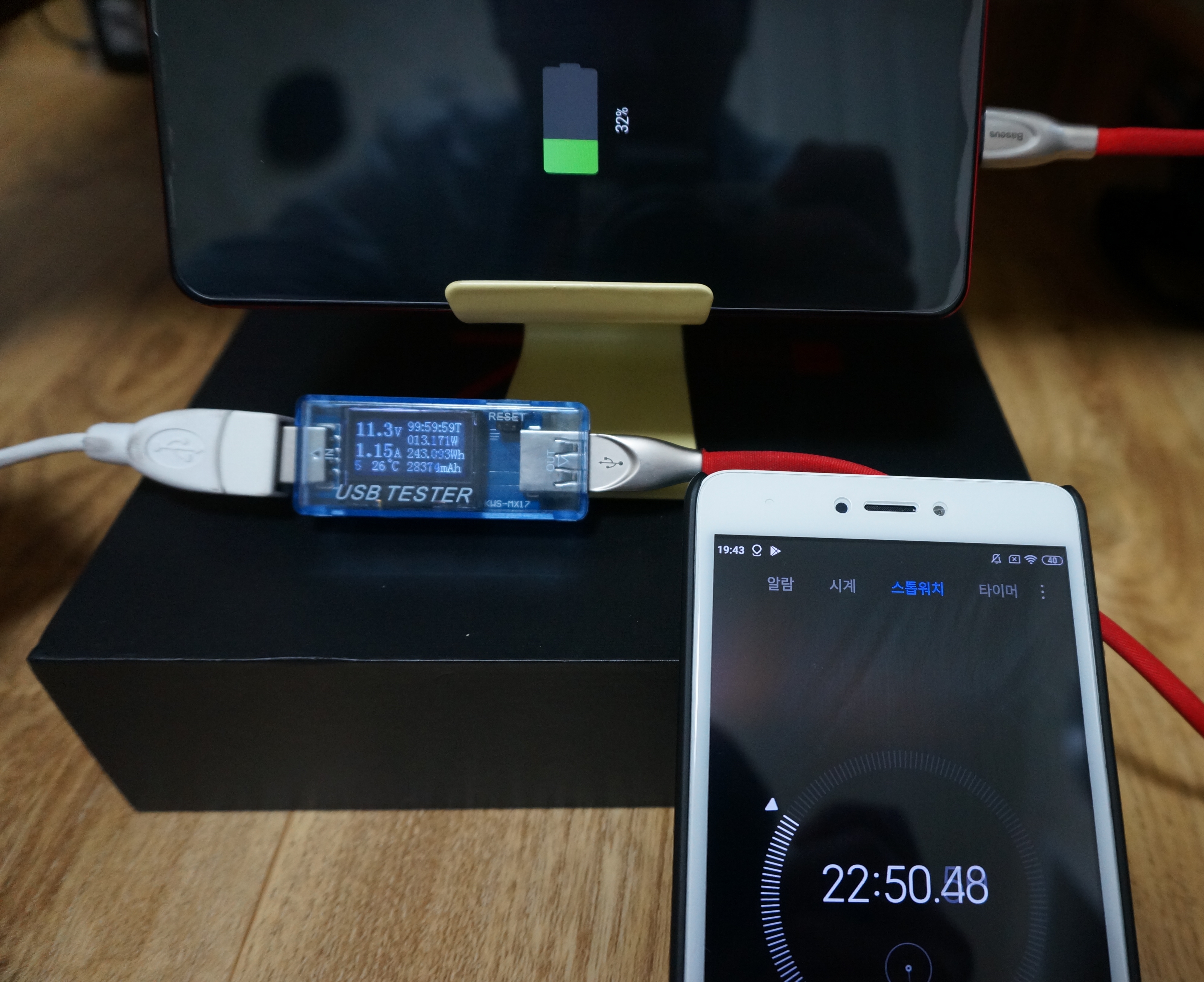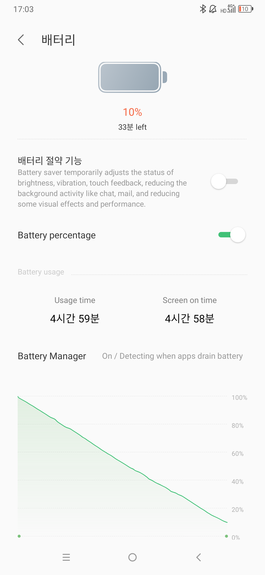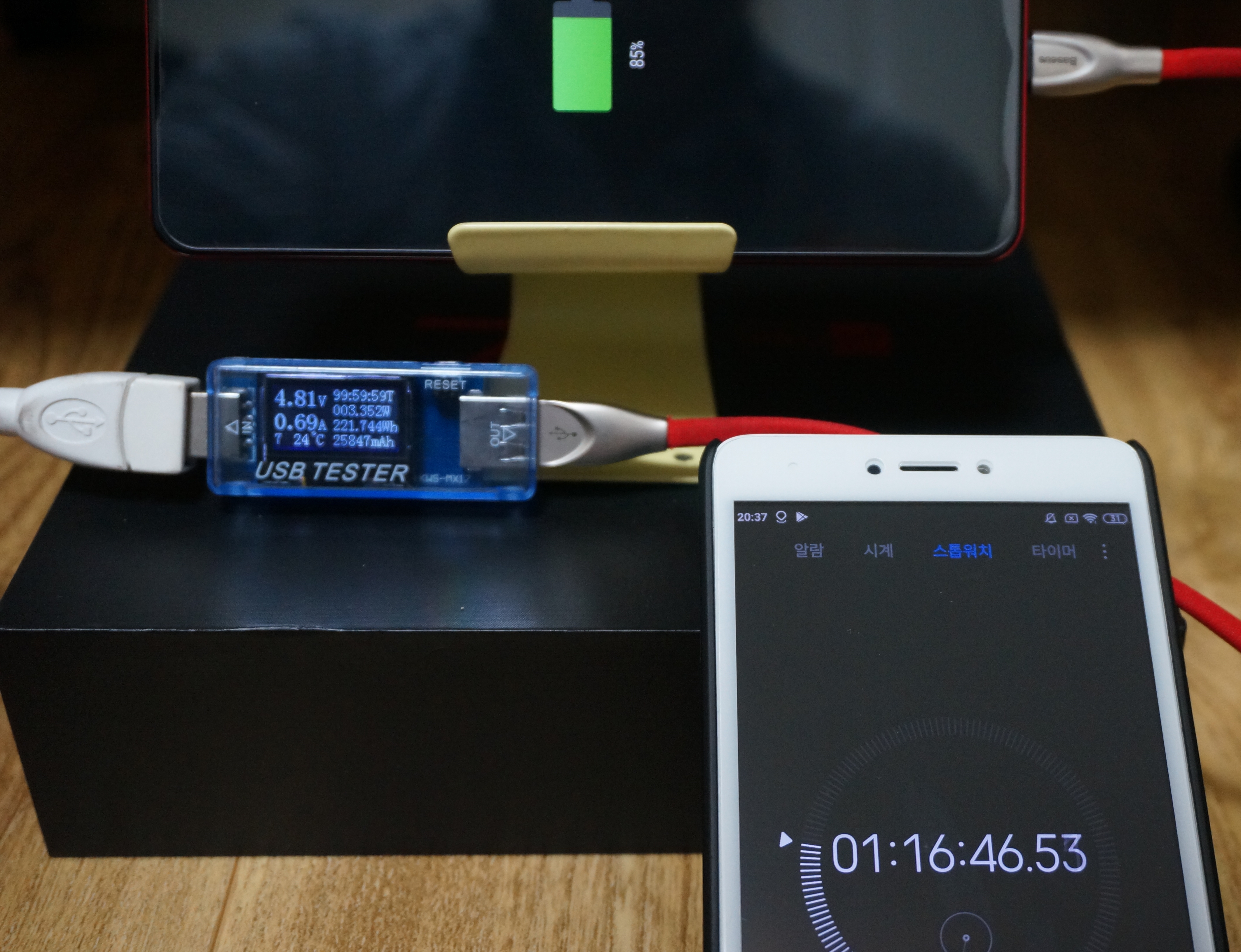 레노버 Z5 Pro GT 스마트폰 배터리 100% 충전한 상태에서 전원케이블 제거 후 중간중간(대략 1시간 간격) 스크린샷을 찍는 방법으로 확인합니다.