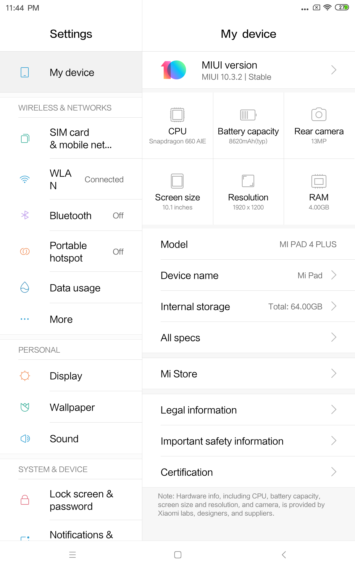 샤오미 스마트패드 미패드4P EU롬 업데이트 완료~ V10.3.2.0 안정
