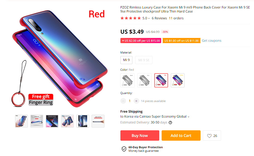 샤오미 스마트폰 미9 PZOZ Rimless 럭셔리 케이스 '알리발 8일째 도착'