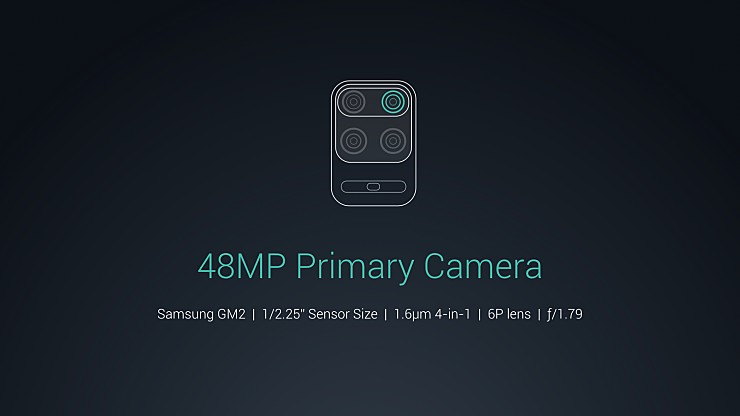 후면 쿼드 카메라 EIS 후면 메인 48MP, 삼성 S5KGM2 1/2.25", 1.6μm 4-in-1, ƒ/1.79 후면 초광각 8MP, 1.12μm, ƒ/2.2, 화각 119º 후면 접사 5MP, 1.12μm, ƒ/2.4, 최대 2cm 접사 후면 심도 2MP, 1.75μm, ƒ/2.4