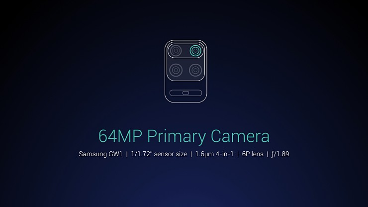 후면 쿼드 카메라 EIS 후면 메인 64MP, 삼성 S5KGW1 1/1.72", 1.6μm 4-in-1, ƒ/1.89 후면 초광각 8MP, 1.12μm, ƒ/2.2, 화각 119º 후면 접사 5MP, 1.12μm, ƒ/2.4, 최대 2cm 접사 후면 심도 2MP, 1.75μm, ƒ/2.4