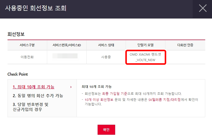 신청서에 작성한 스마트폰 모델명을 보고 SKT에서 OMD 모델명 부여