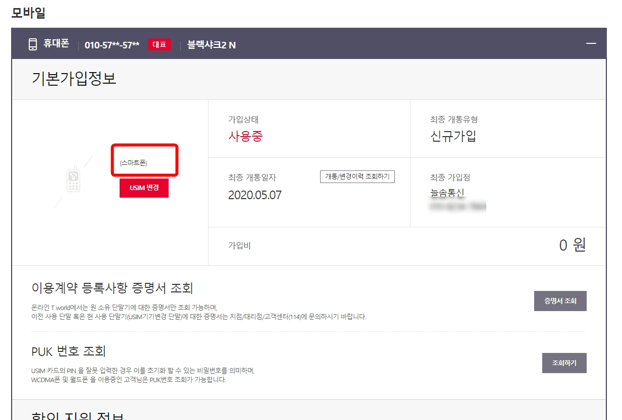 T월드에서 확인한 정보는 태블릿으로 보임, 오늘은 (스마트폰) 뭐가 맞는 건지 모르겠음