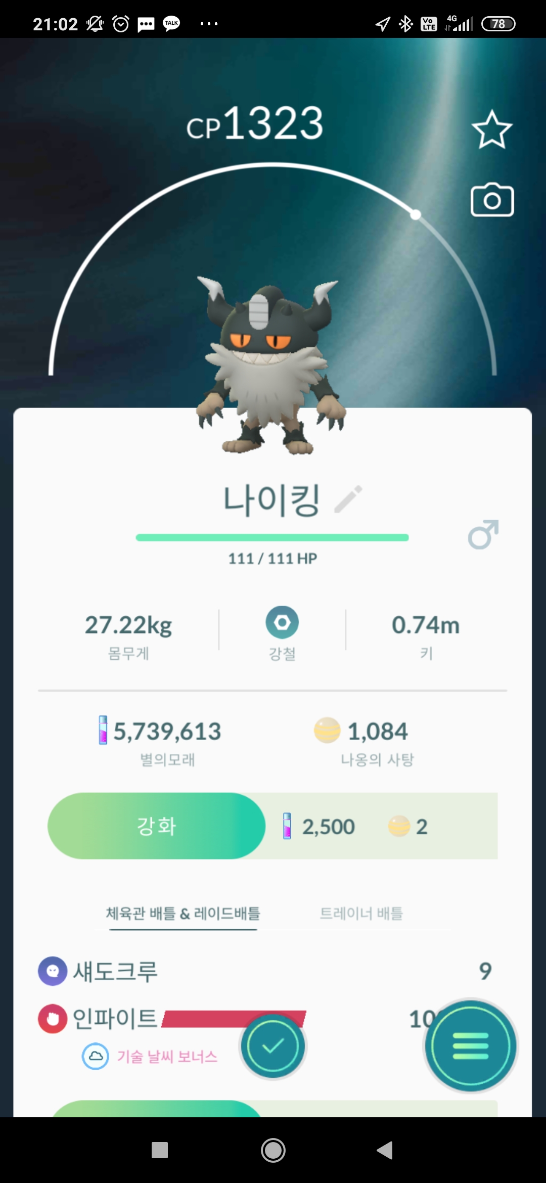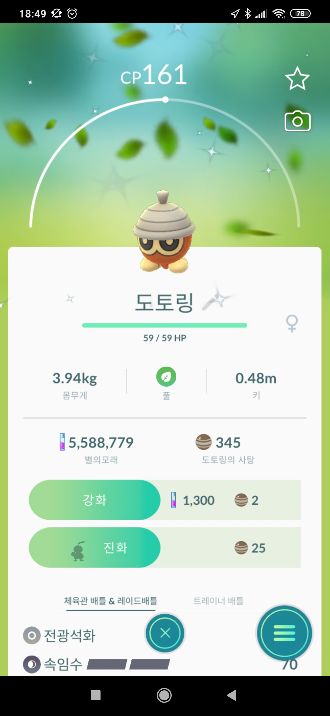 고디보미 → 고디탱의 사탕 100개 진화