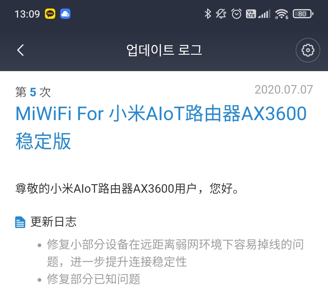 샤오미 무선공유기 미 AX3600 펌웨어 업데이트 v1.0.67 안정판