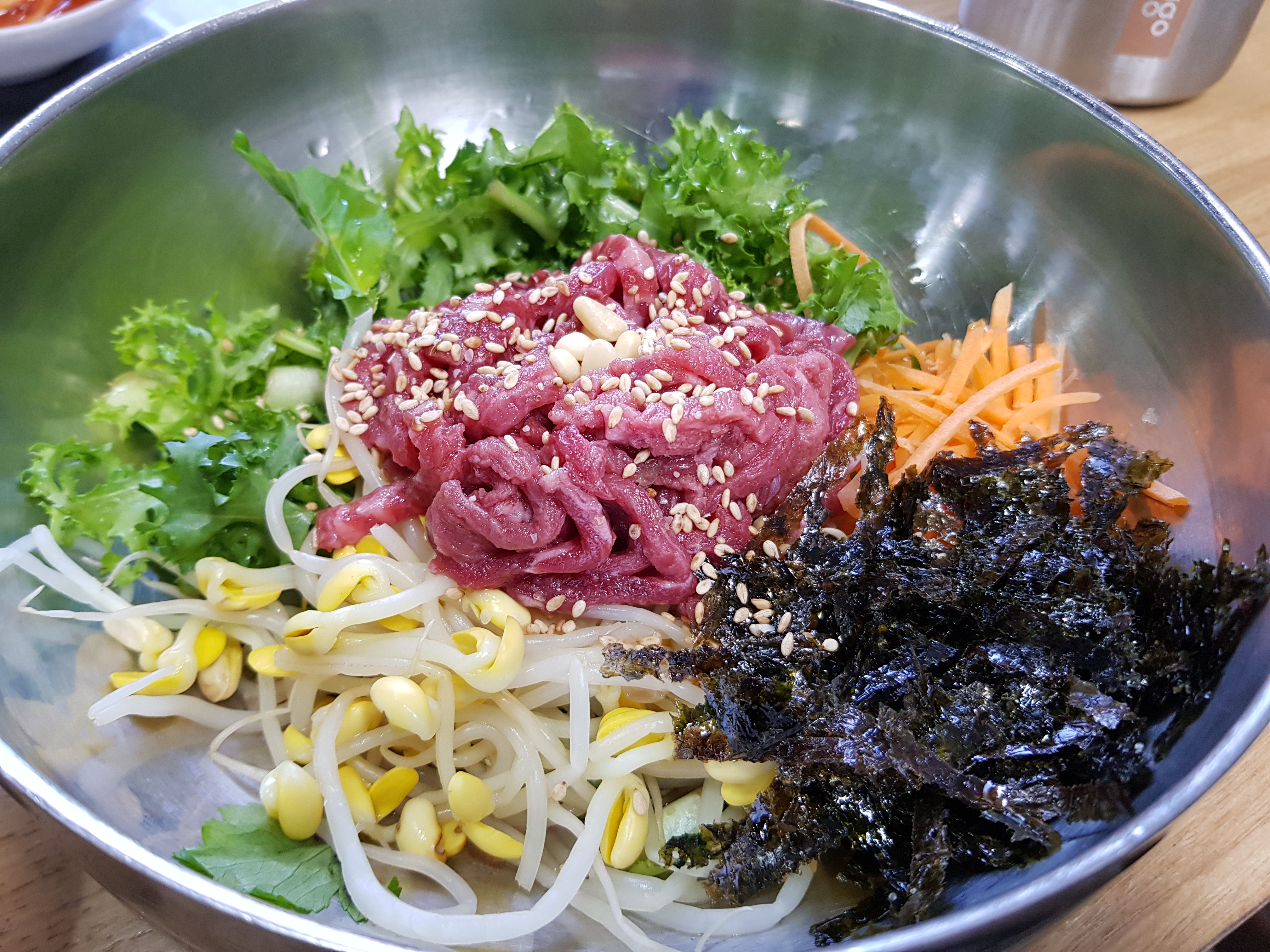 늦은 점심은 가볍게 육회비빔밥으로~