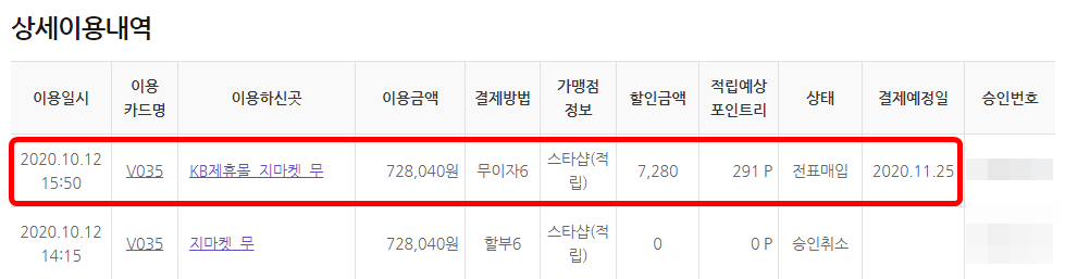 10월 12일 지마켓 13% 할인쿠폰 + 7% KB카드할인 = 728,040원