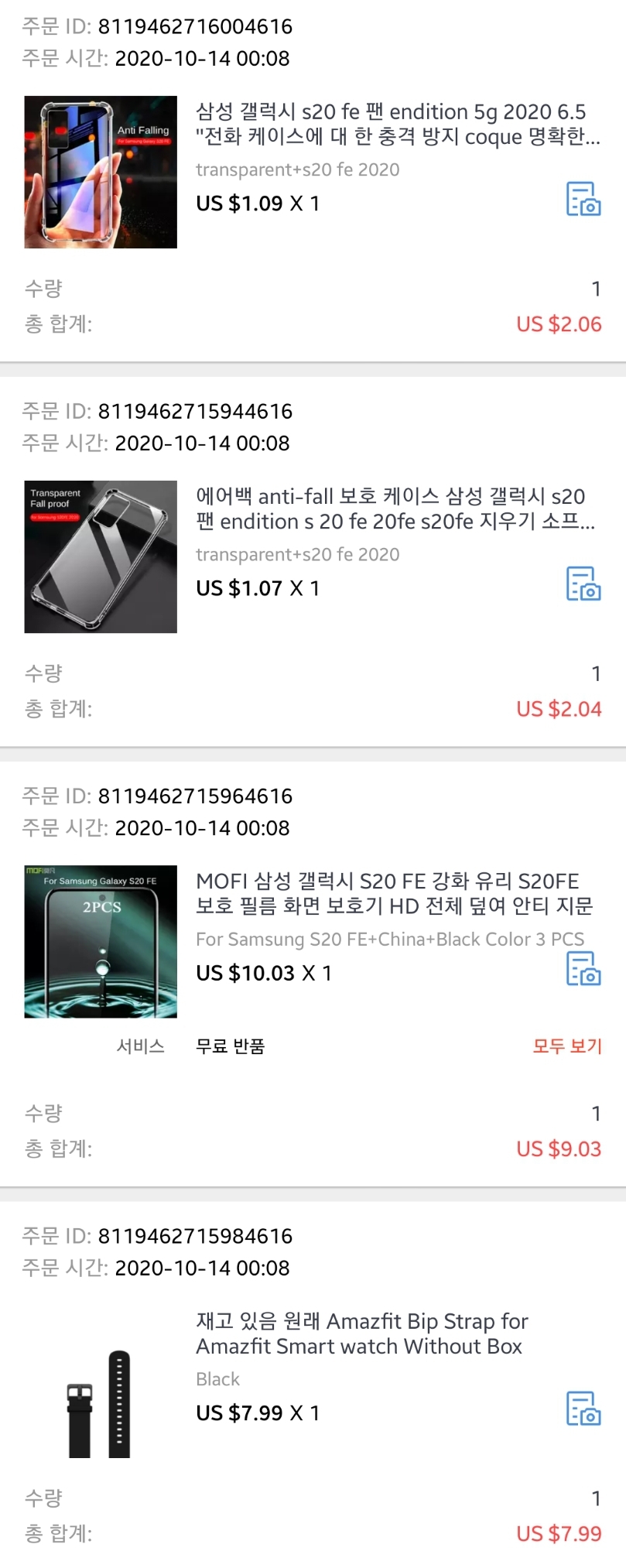 삼성 '갤럭시S20FE' 풀커버, 케이스 등 지름~ 알리 #직구