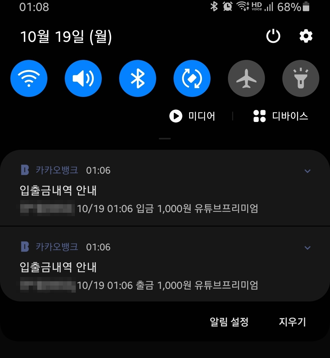 이상 없이 유튜브 프리미엄 6개월 무료 체험에 들어왔습니다.