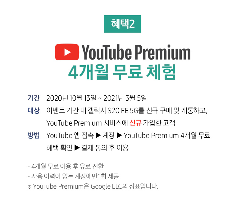 여러 혜택 중 하나인 유튜브 프리미엄 4개월 무료 체험을 해볼까... 라는 생각이 들어서 실행에 옮겼습니다.