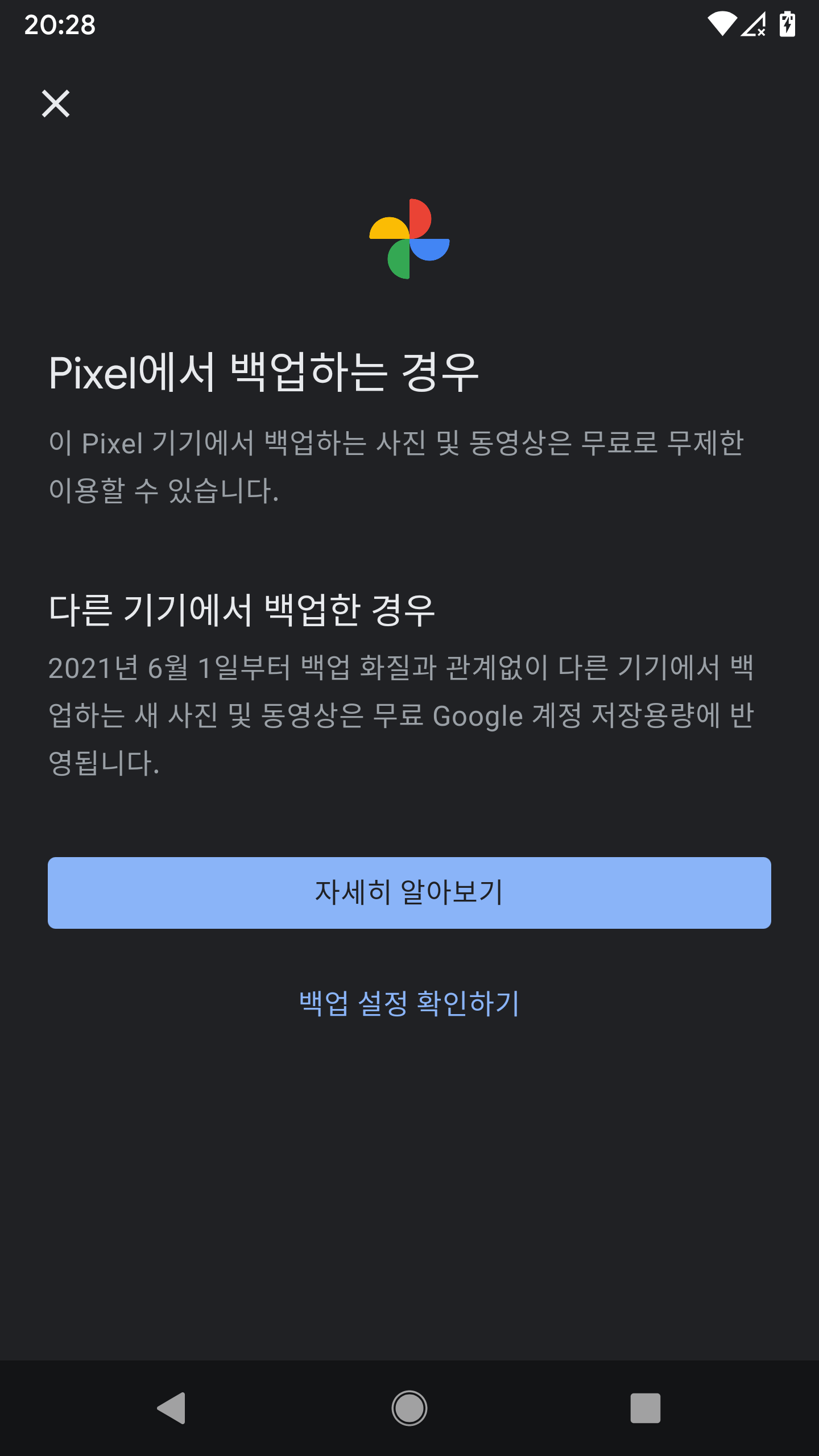 Pixel에서 백업하는 경우