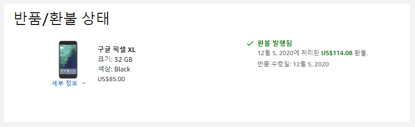 구글 픽셀 XL 스마트폰 반품/환불 배송비 포함 $94.08