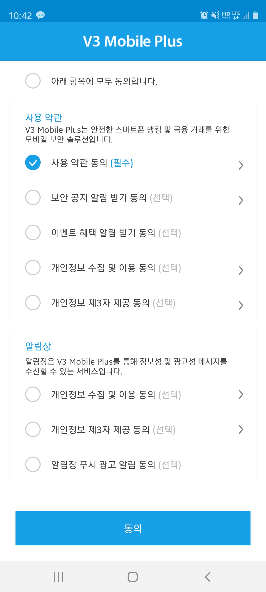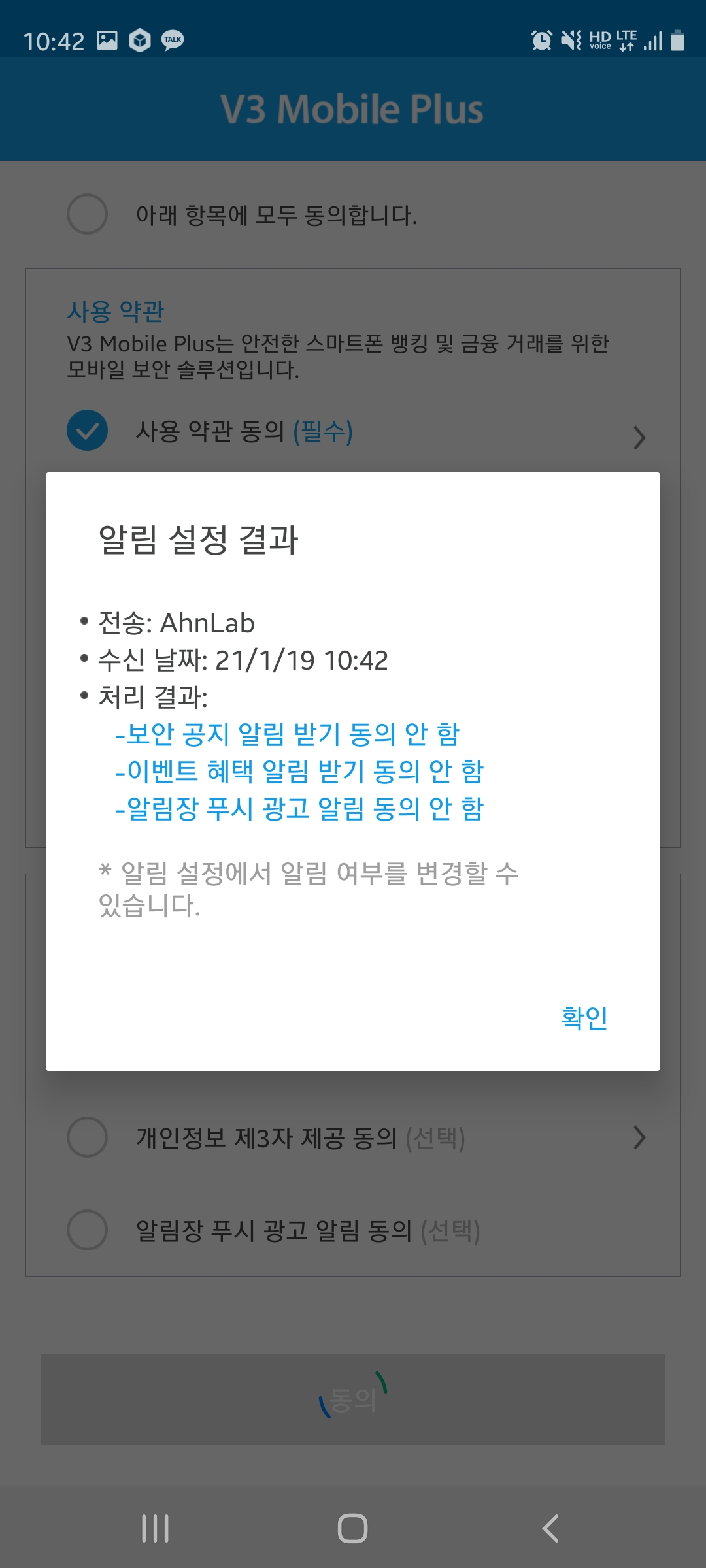 서로 다른 입장 차이: V3 Mobile Plus '동의'
