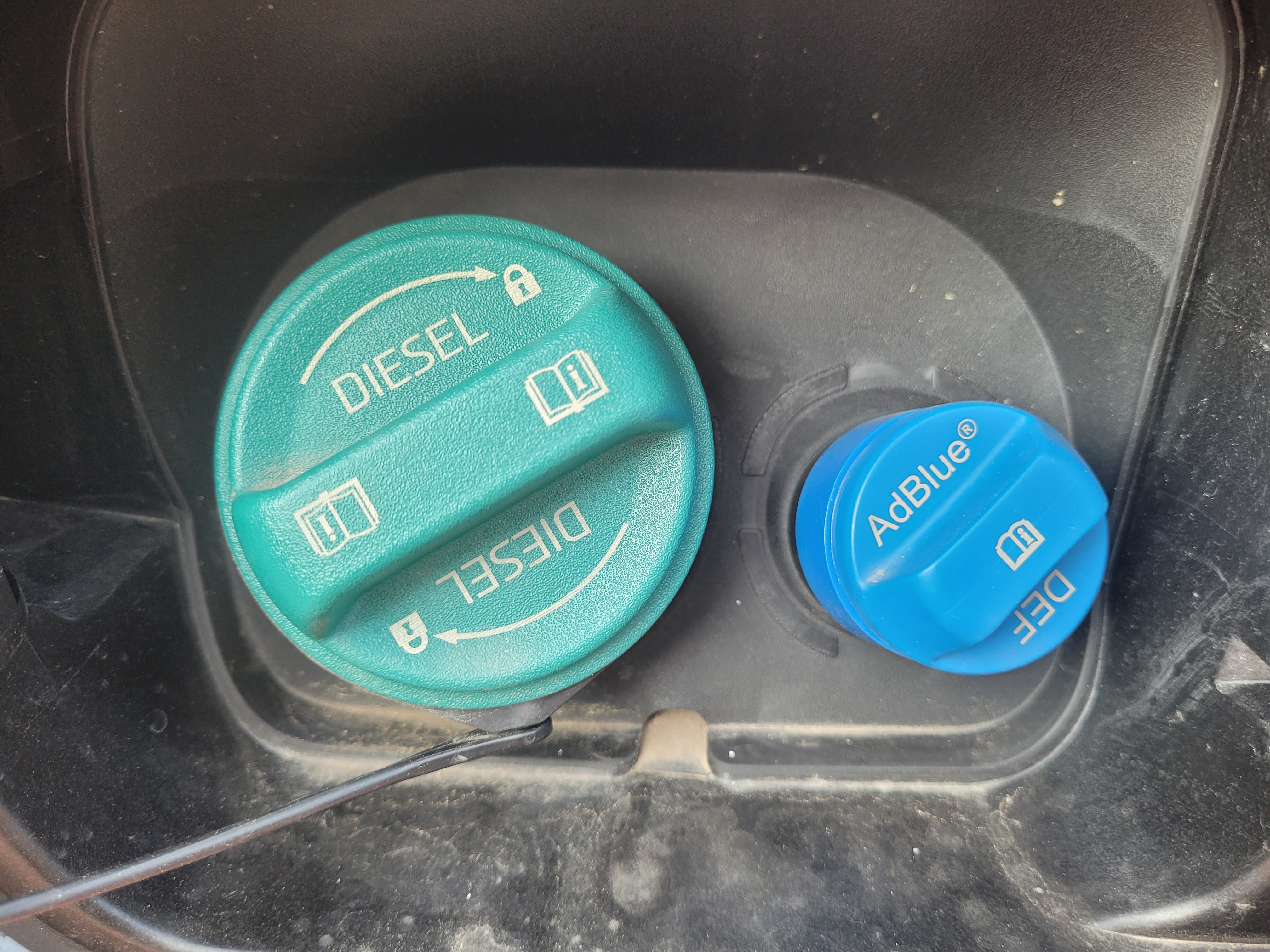디젤 주유구 옆 AdBlue라고 적힌 캡을 열고