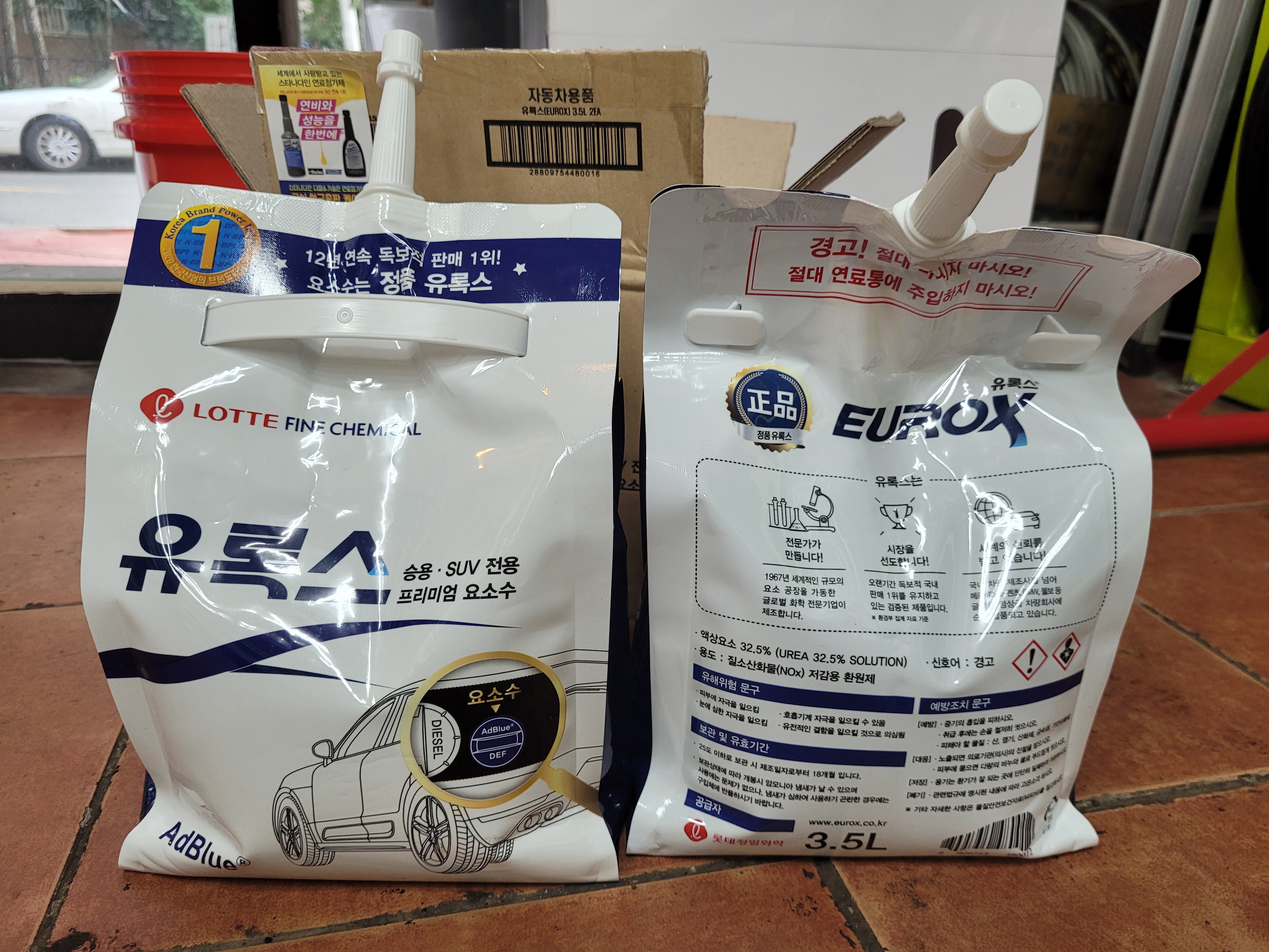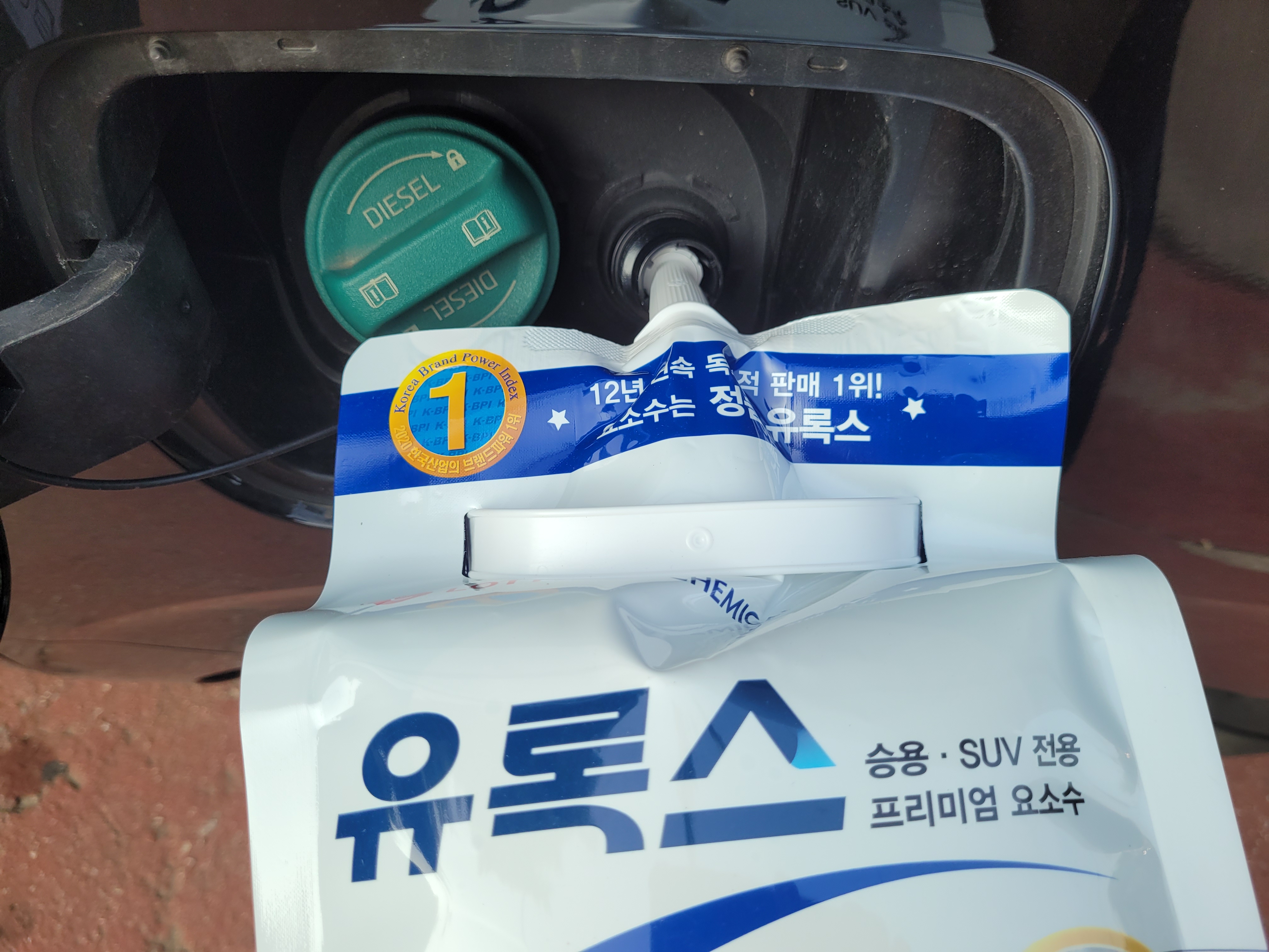 요소수가 담겨있는 유록스 제품의 마개를 열어서 주입하면 끝!