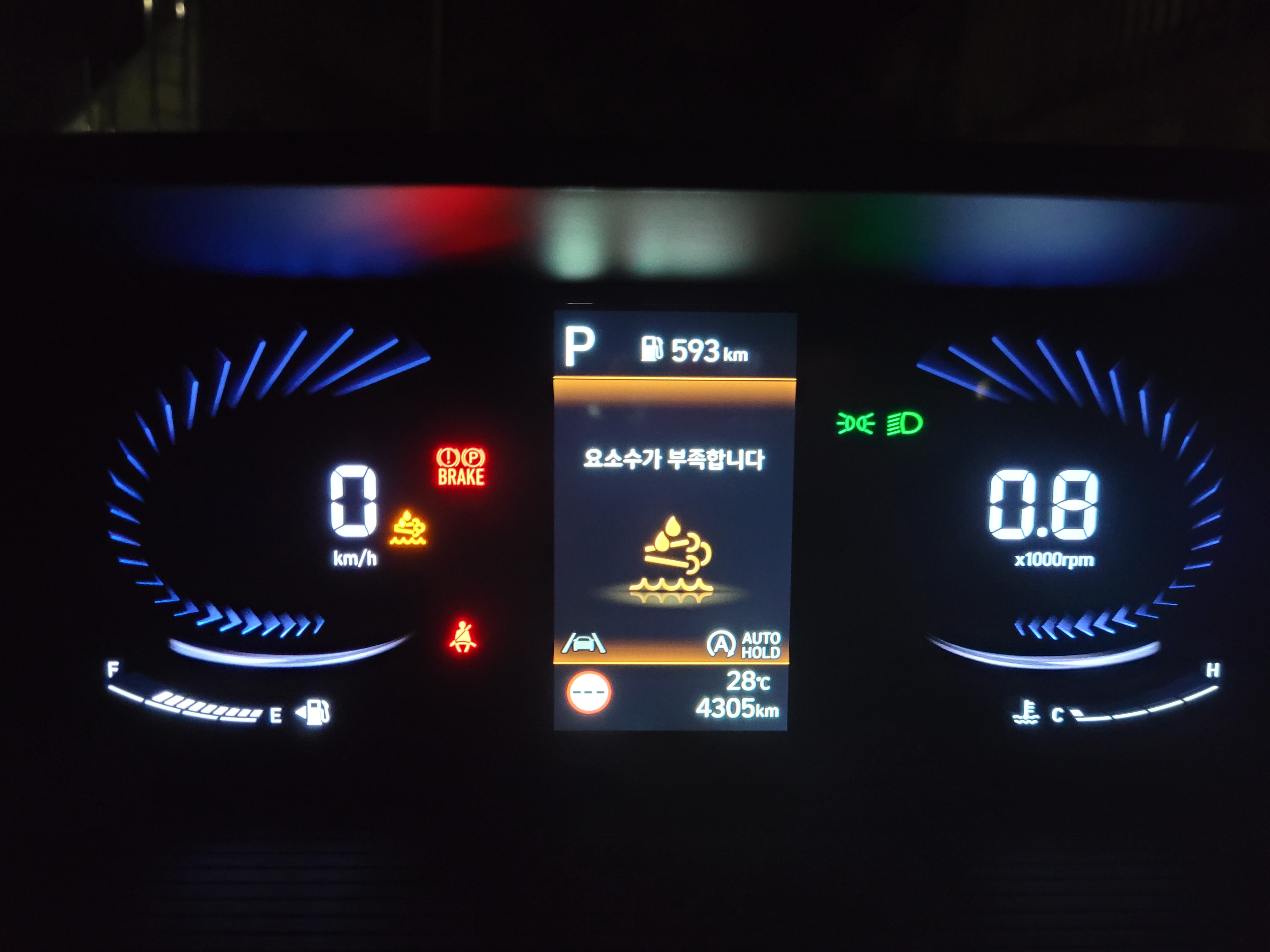 그러니까 출고 후 대략 4200Km 주행 후 요소수 부족 경고등이 들어왔습니다.