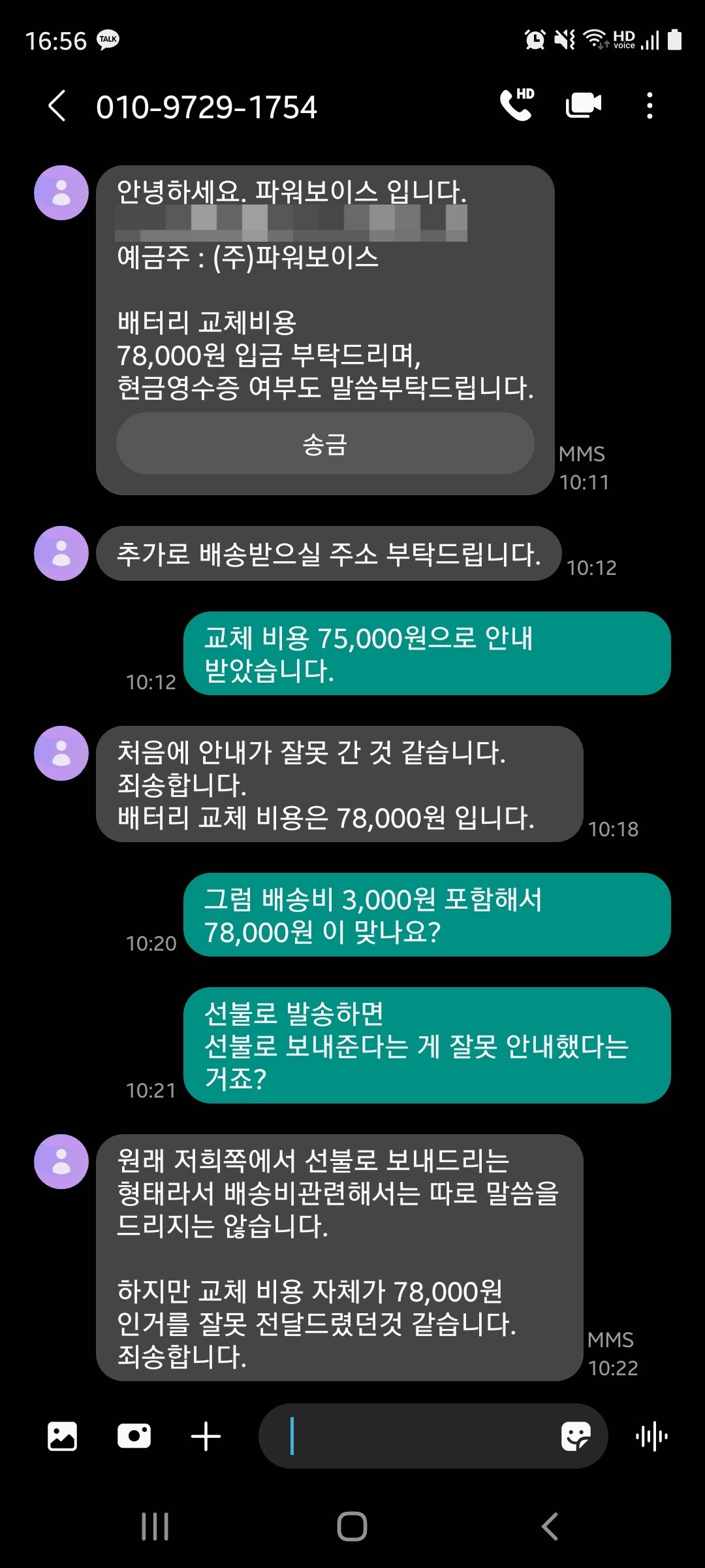 결과적으로 배터리 교체 비용은 78,000원 입니다.