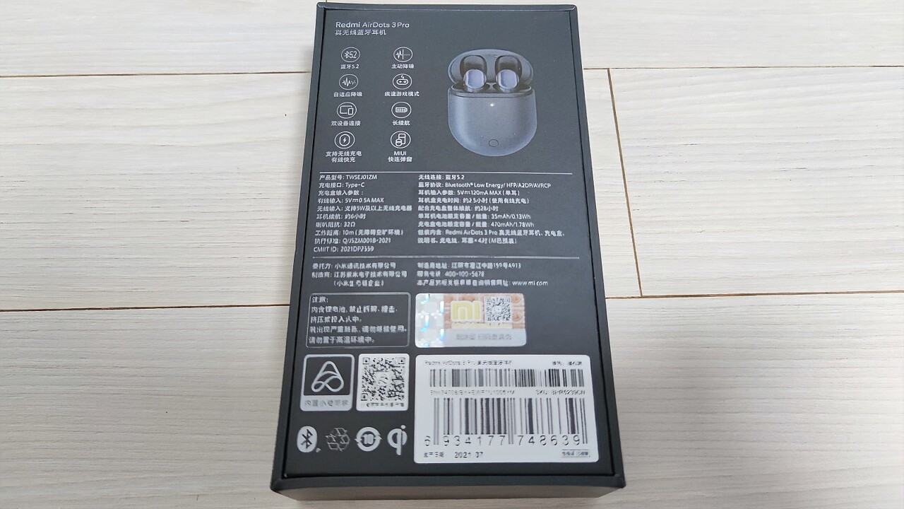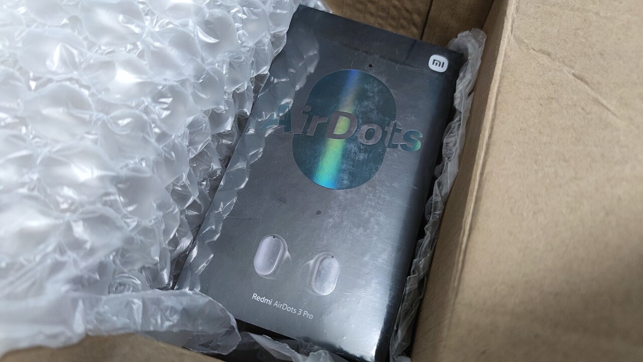 박스 전면에 샤오미 로고와 AirDots 로고, 제품 사진, 제품명이 적혀있습니다.