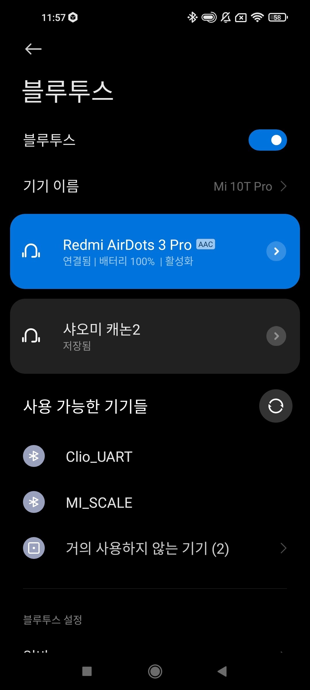 *페어링된 스마트폰은 샤오미 미10T프로 입니다.