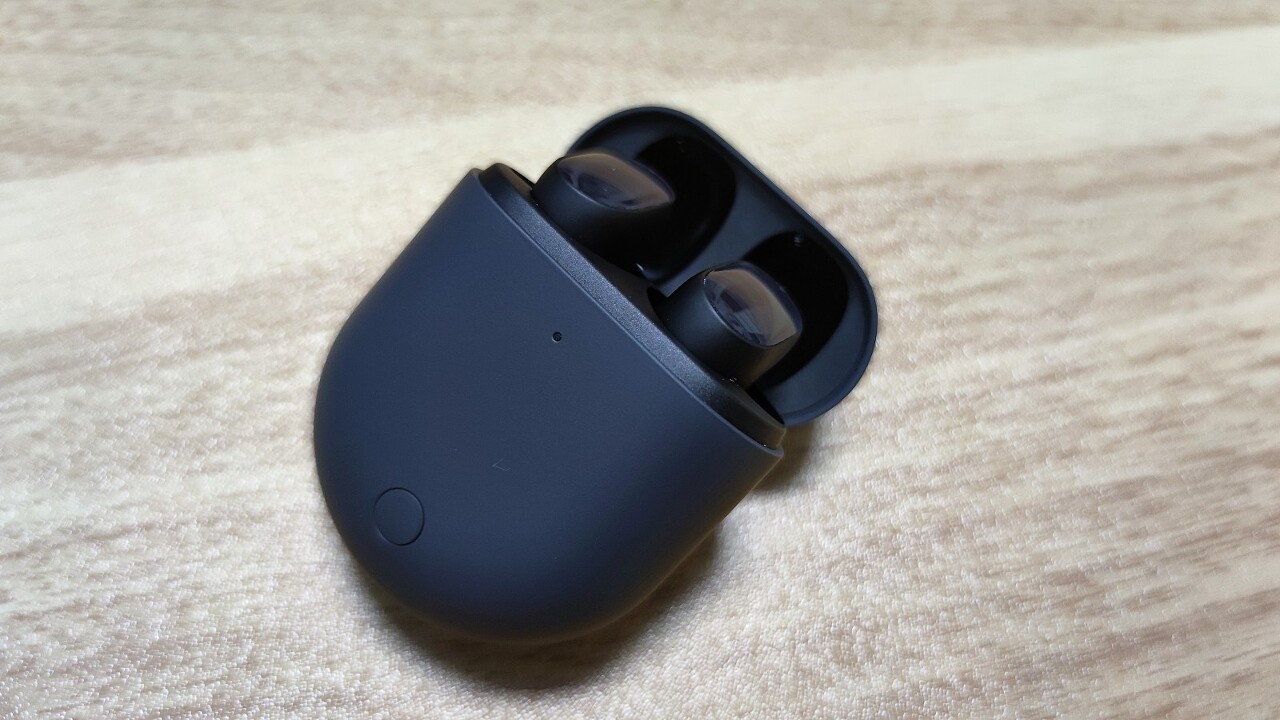 블루투스 페어링 버튼이 충전 케이스 전면에 보입니다.