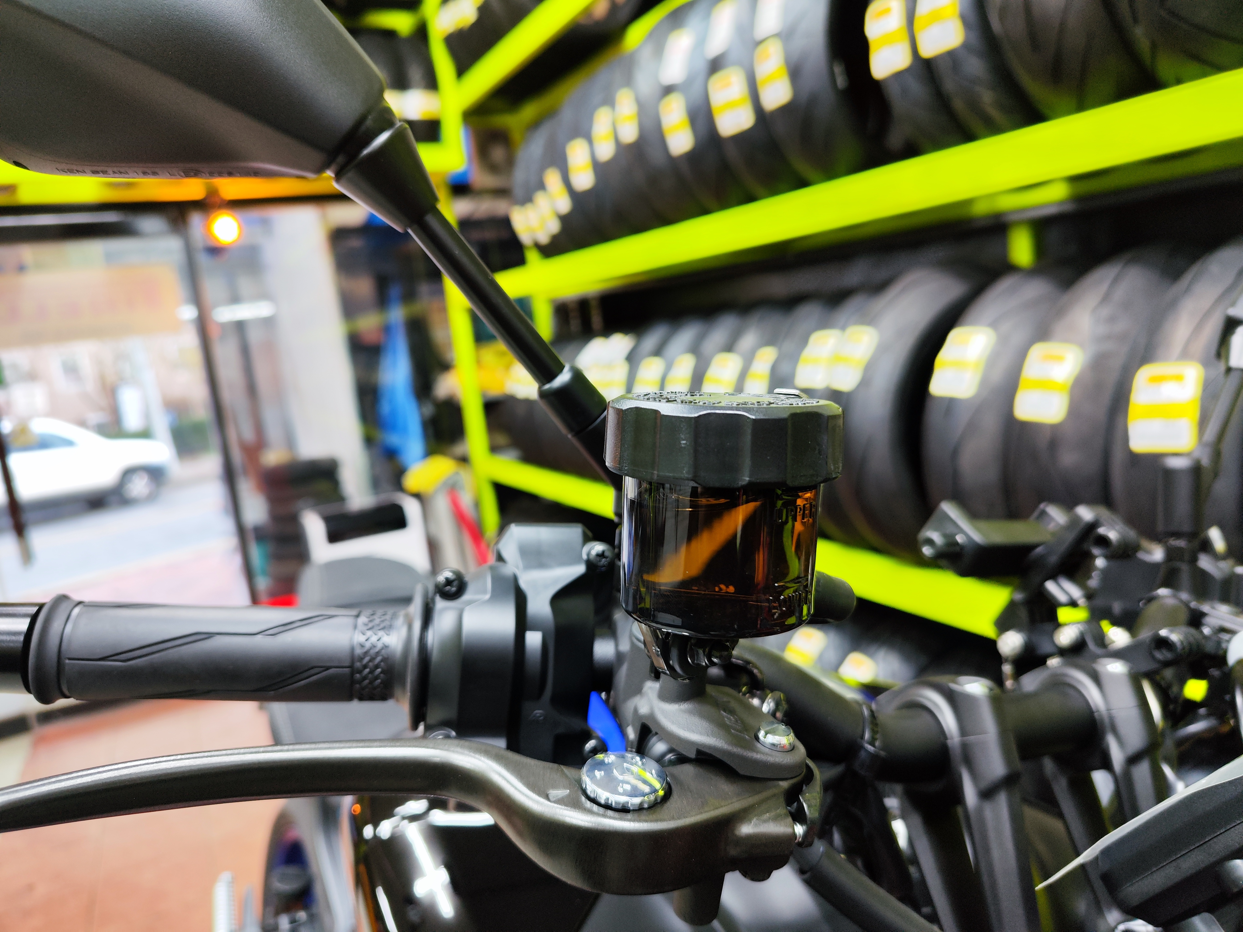기존 MT-09는 프론트 브레이크 리저브 탱크가 사각형이라 디젤(Dzell) 제품을 이용했지만