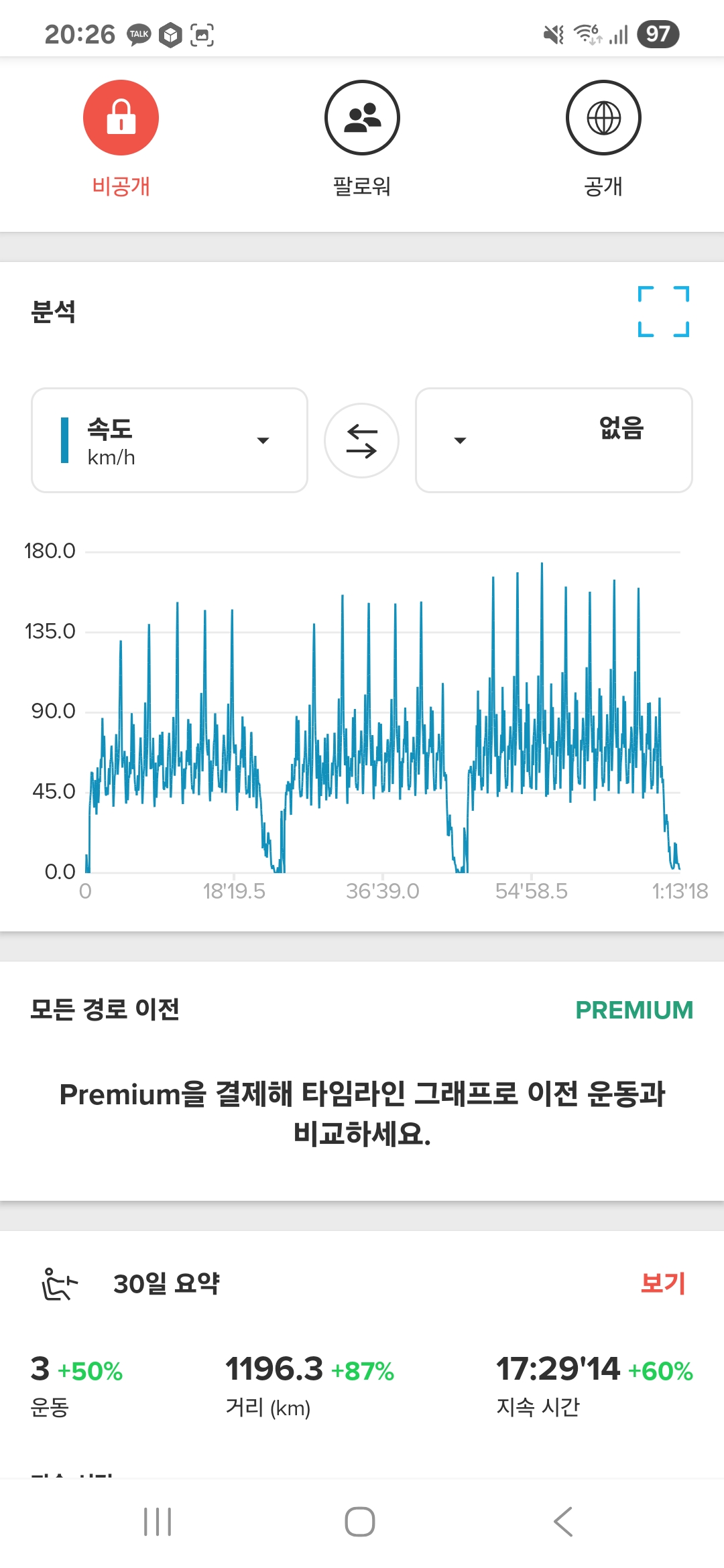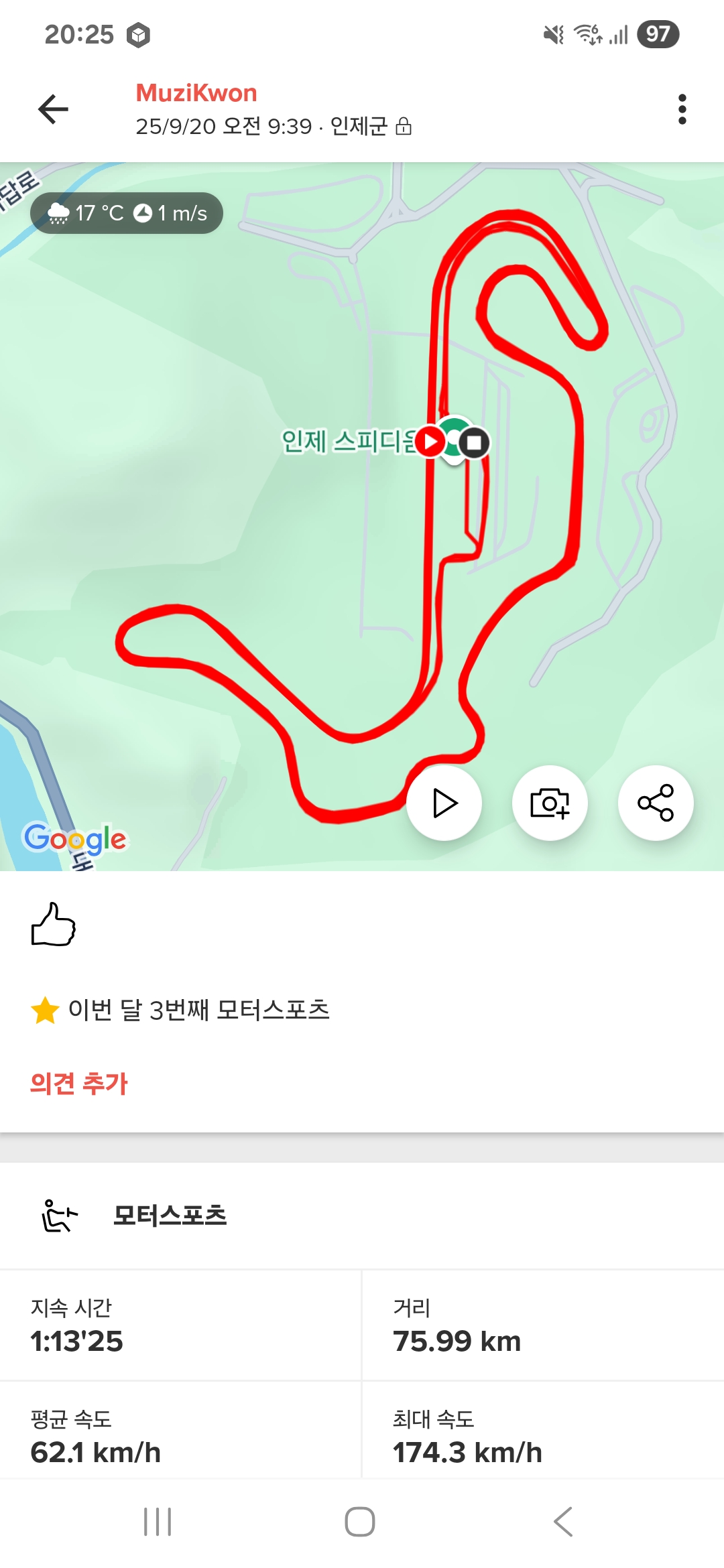 노면이 살짝 말라가는 게 보여서 페이스가 조금 향상된 듯