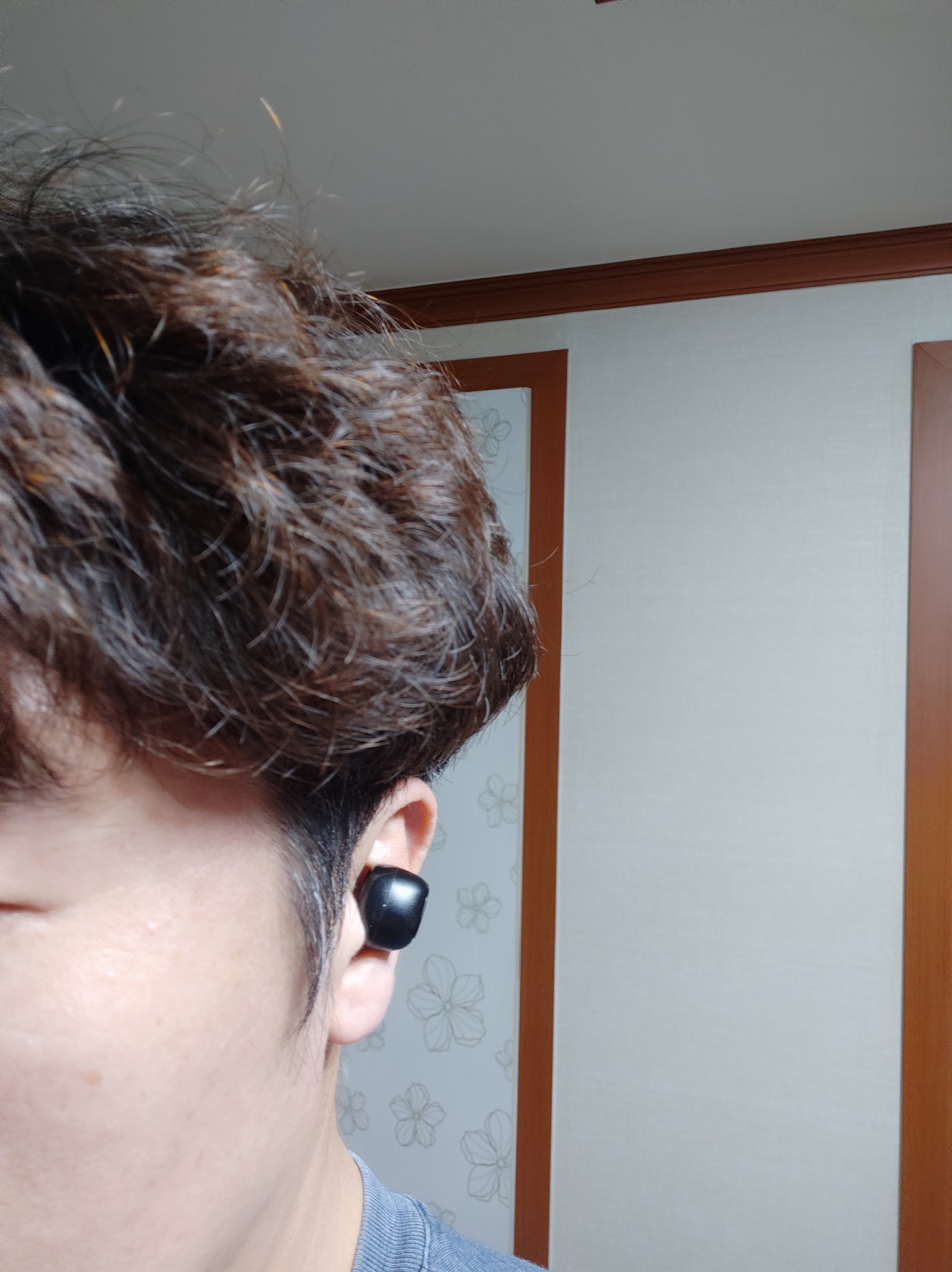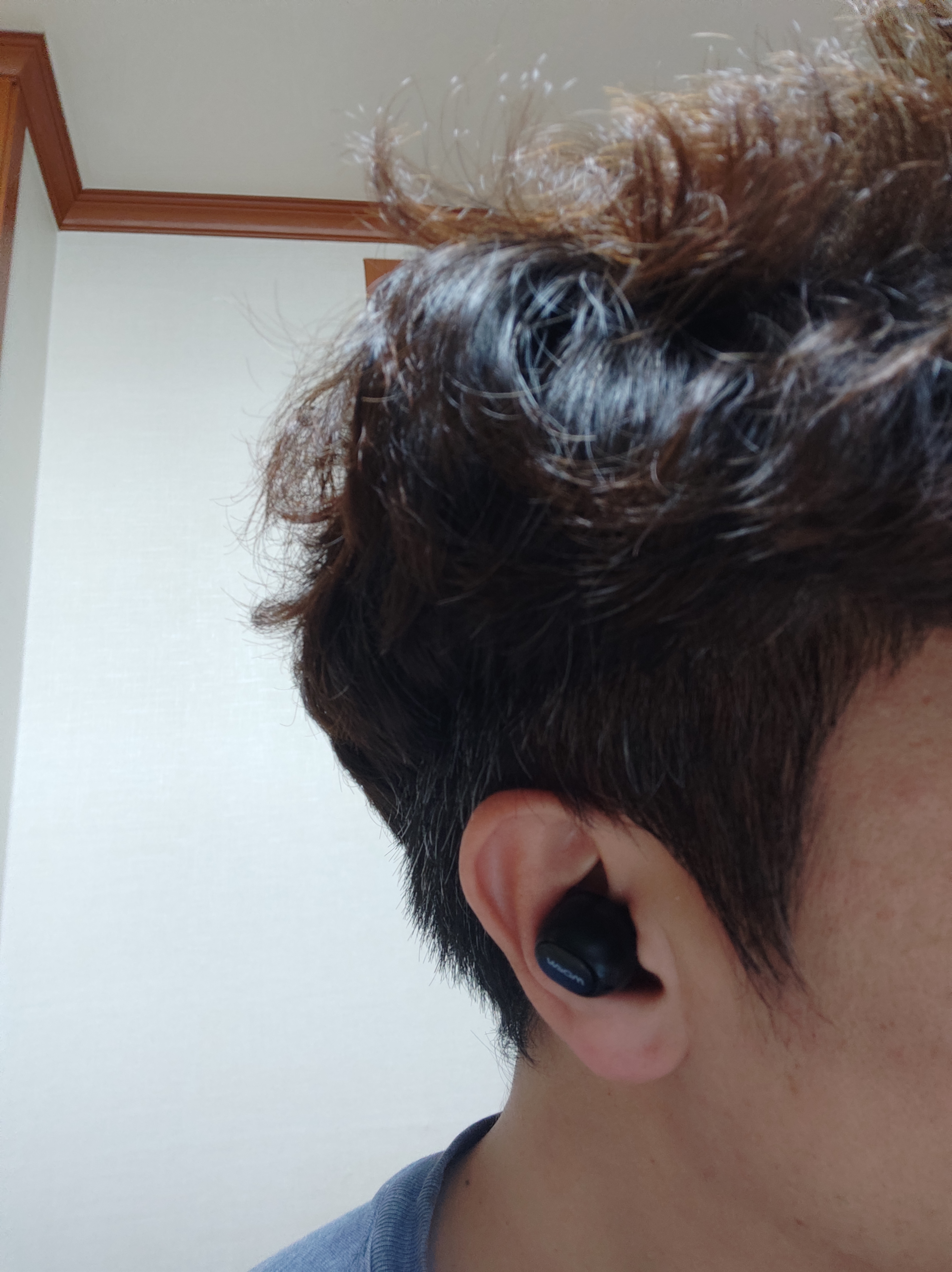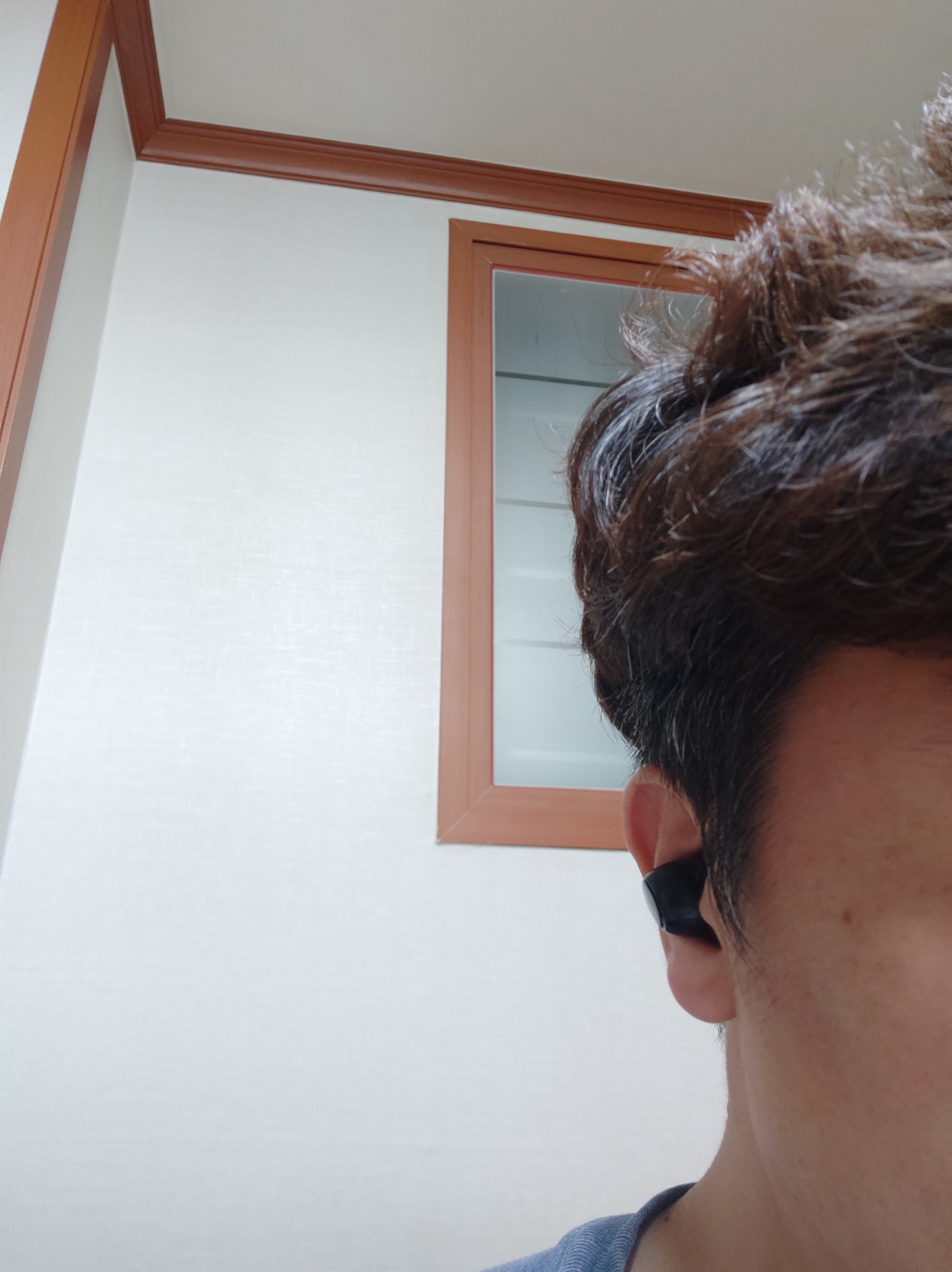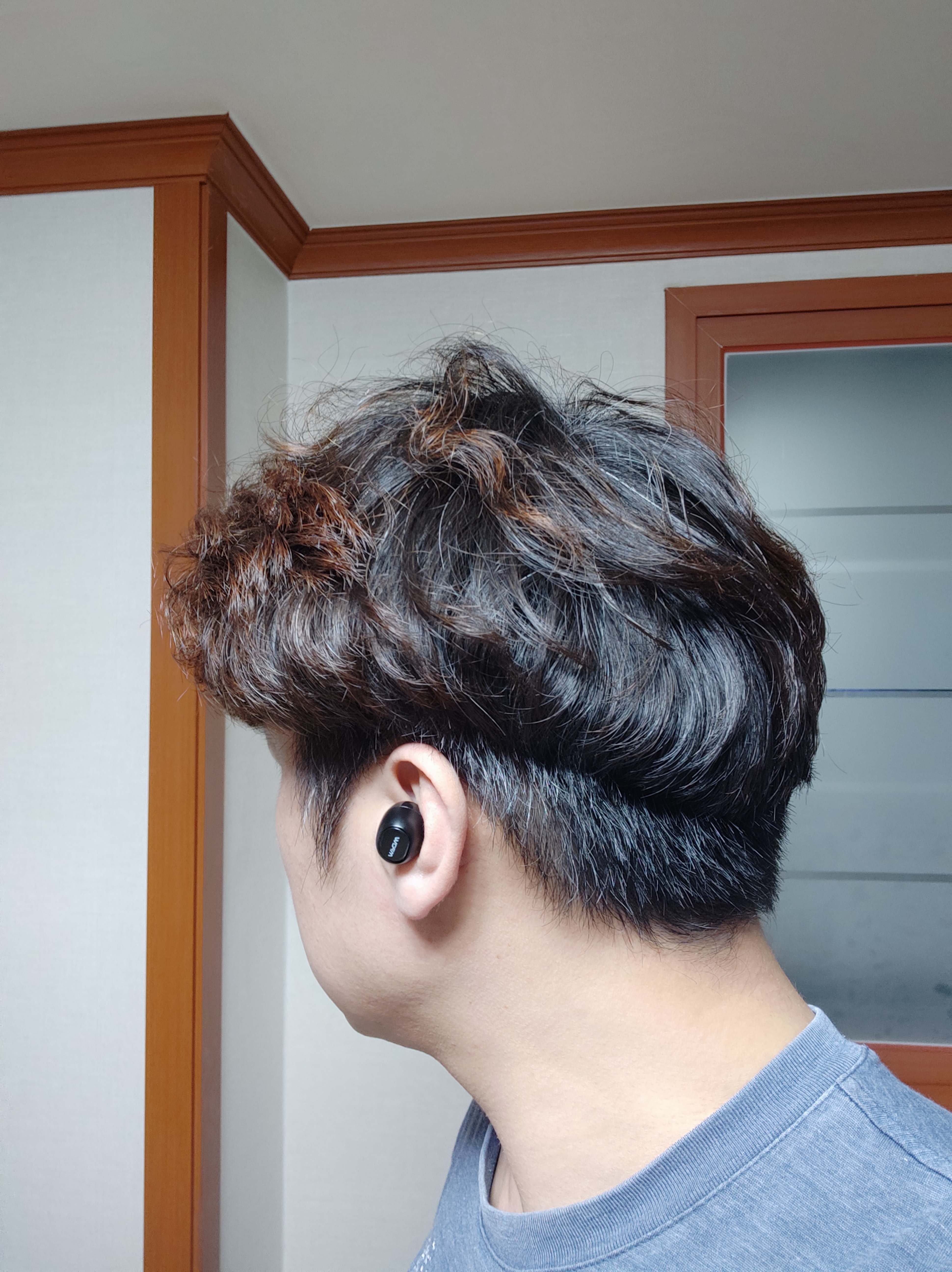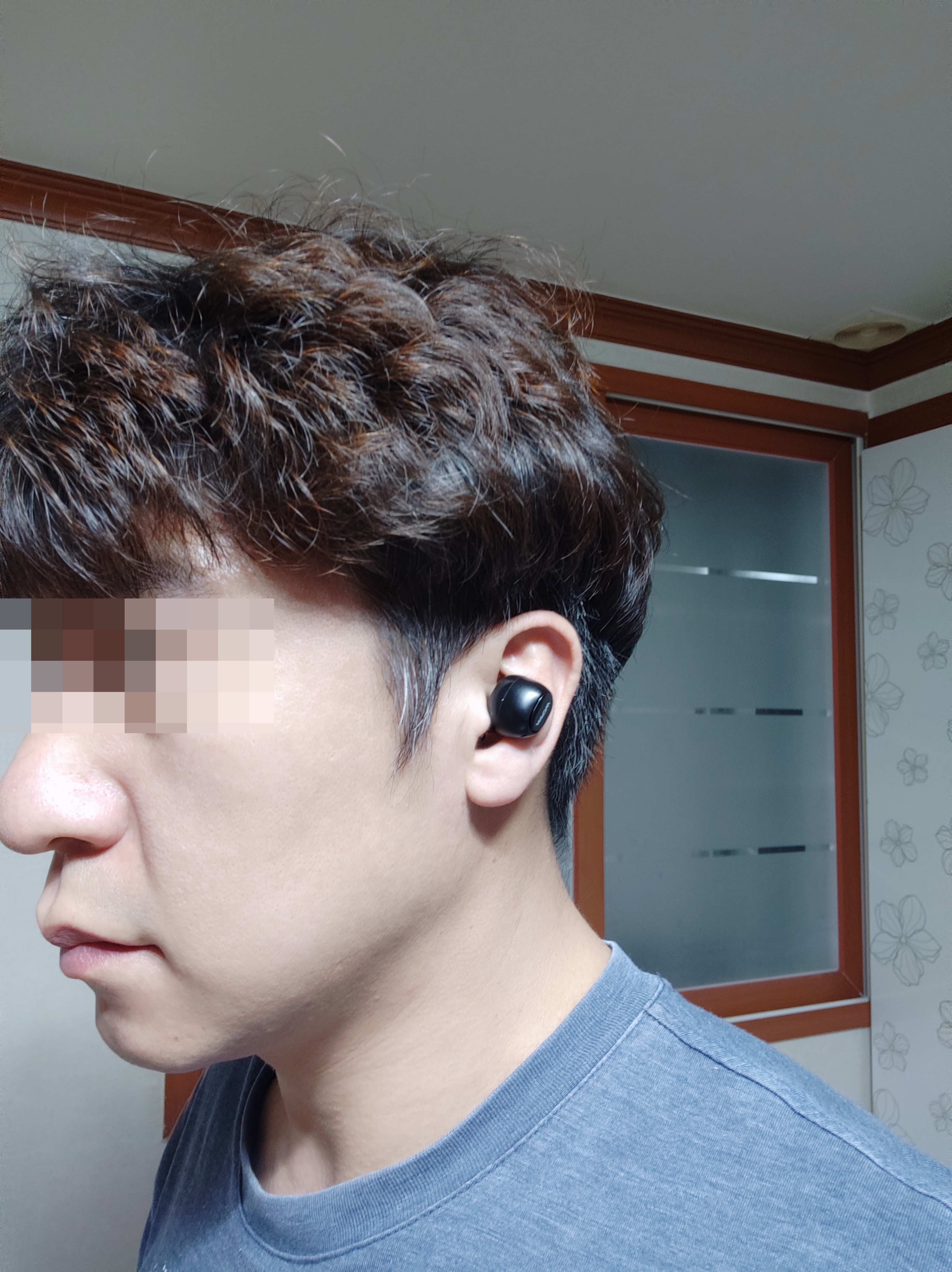 귀에 살짝 걸쳐있다는 의견이 있어서, 다시 이어폰을 꼽은 사진 추가합니다.