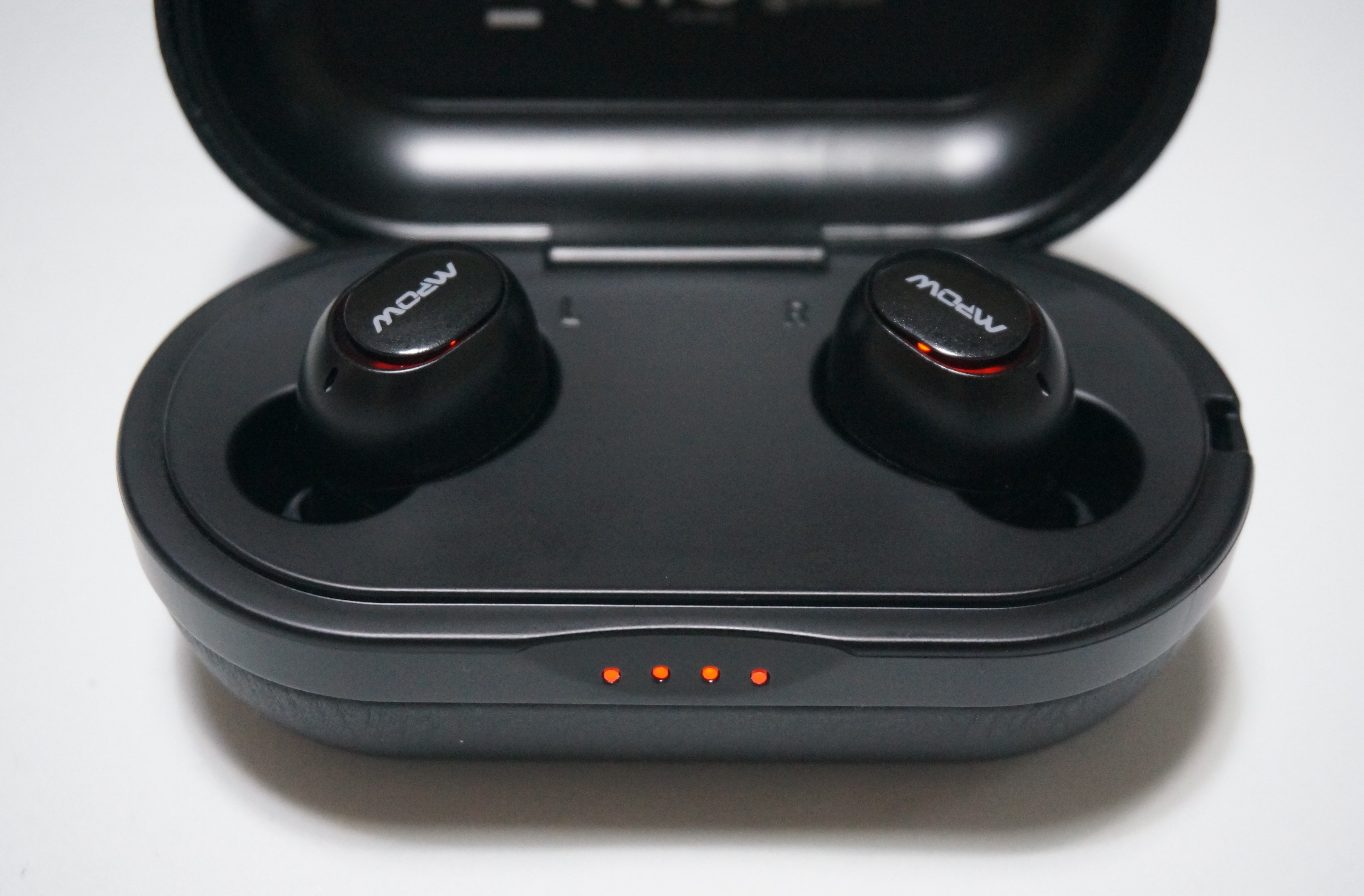 케이스 안에서 이어버즈가 충전되고 있는 모습입니다.