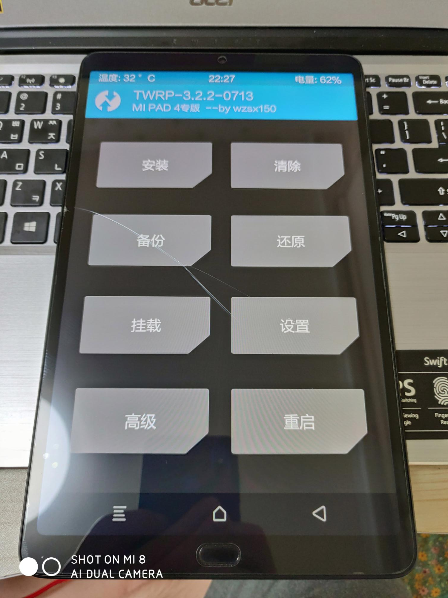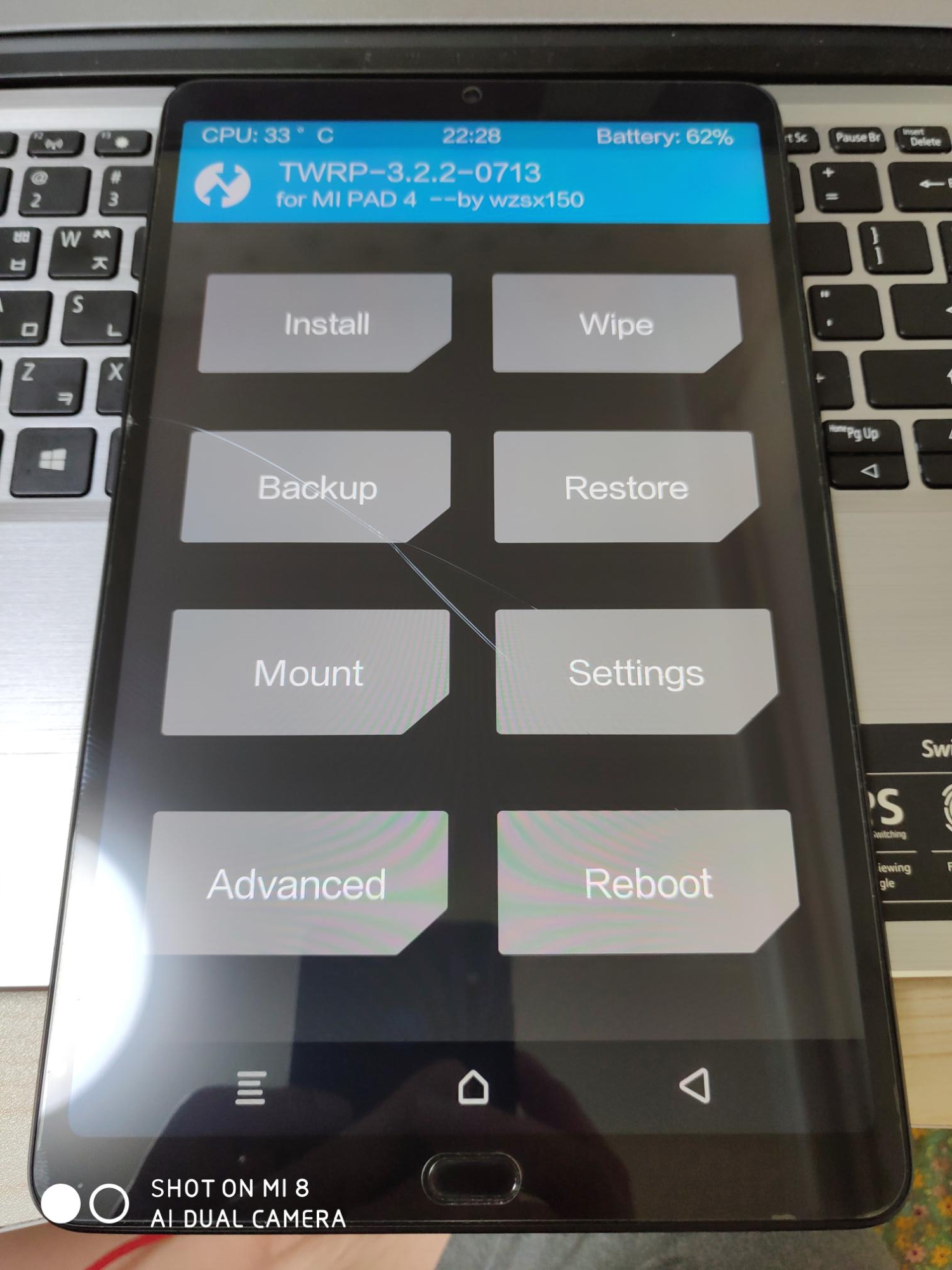 샤오미 미패드4 플러스에 설치된 TWRP 리커버리입니다.