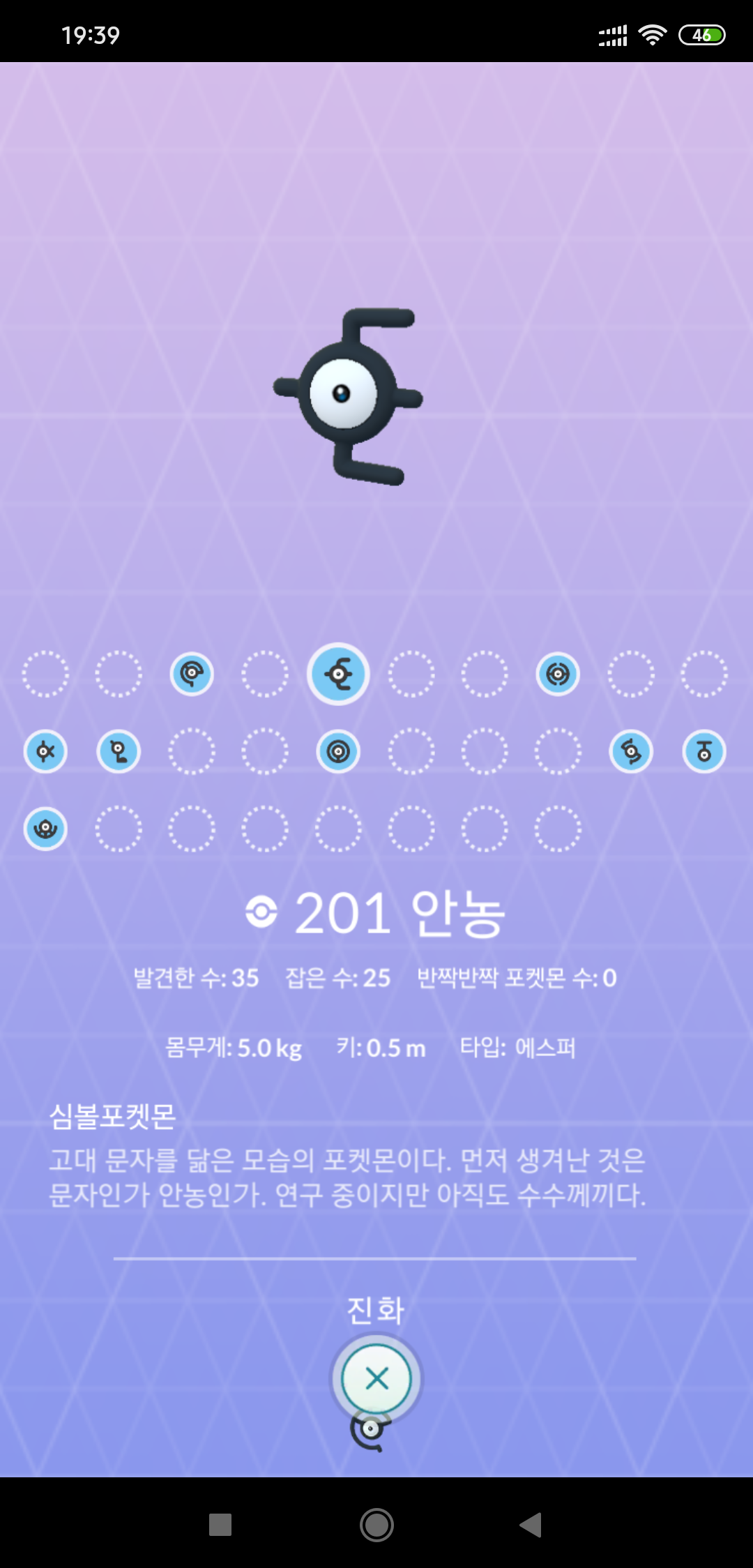 포켓몬페스타 근처에 가보니 도감에 없던 안농 'E' 가 보이길래 잡았습니다.