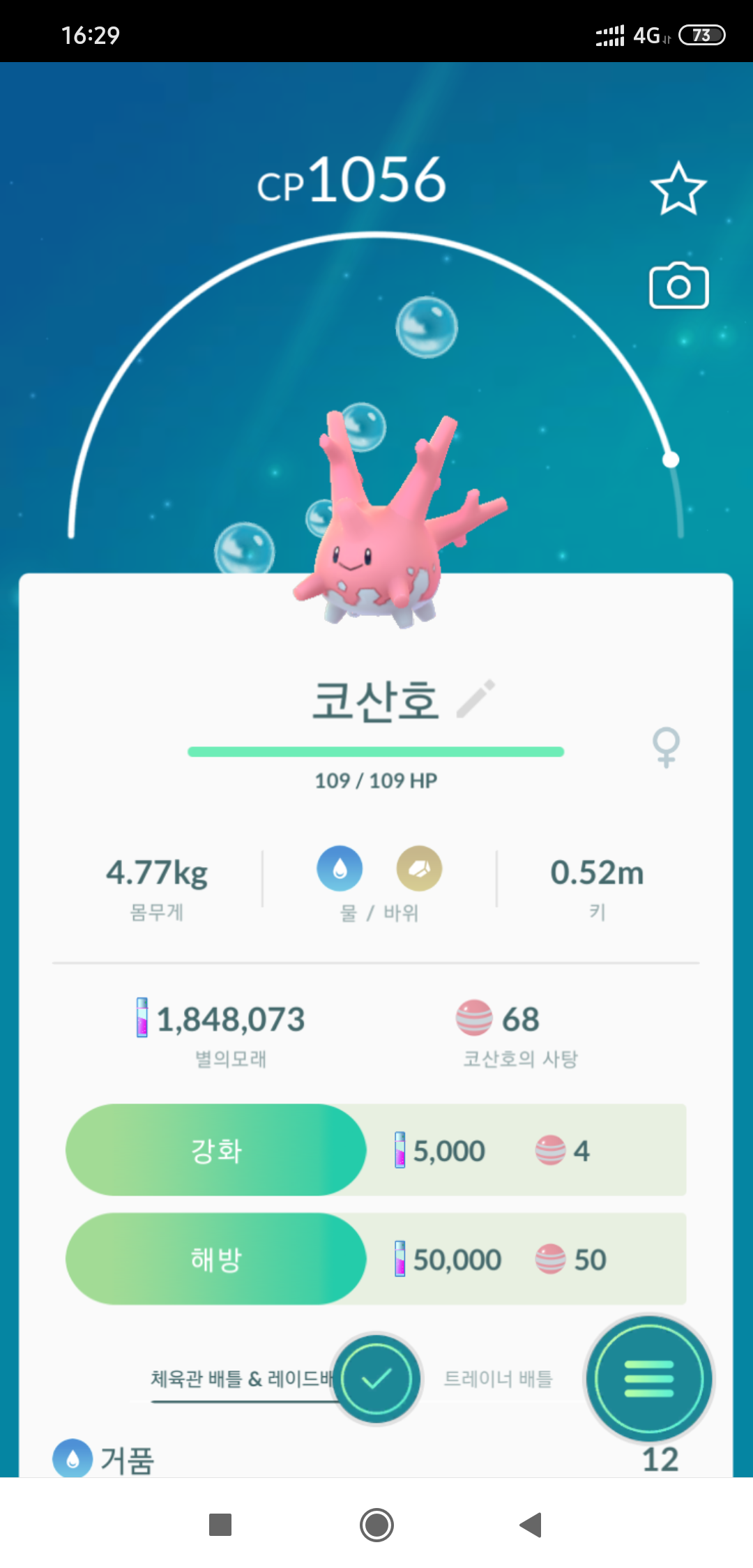 코산호는 포켓몬고 친구에게 교환으로 받아서 이미 도감을 채웠지만, 직접 잡는 게 당연히 더 좋겠지요 ㅎㅎ