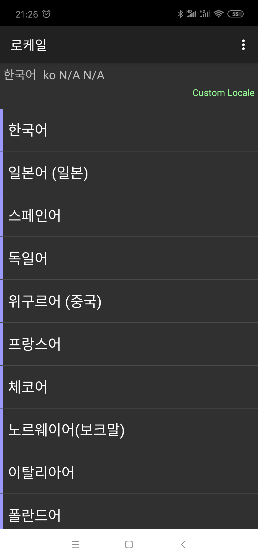 로케일 설정으로 설정 이외의 앱에서 한글을 볼 수 있습니다.
