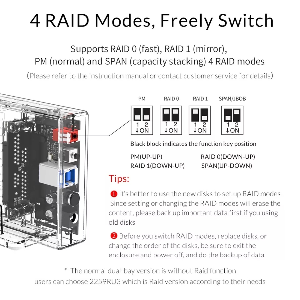 이 제품의 특징은 SSD(HDD) 레이드 구성이 가능하다는 점입니다.