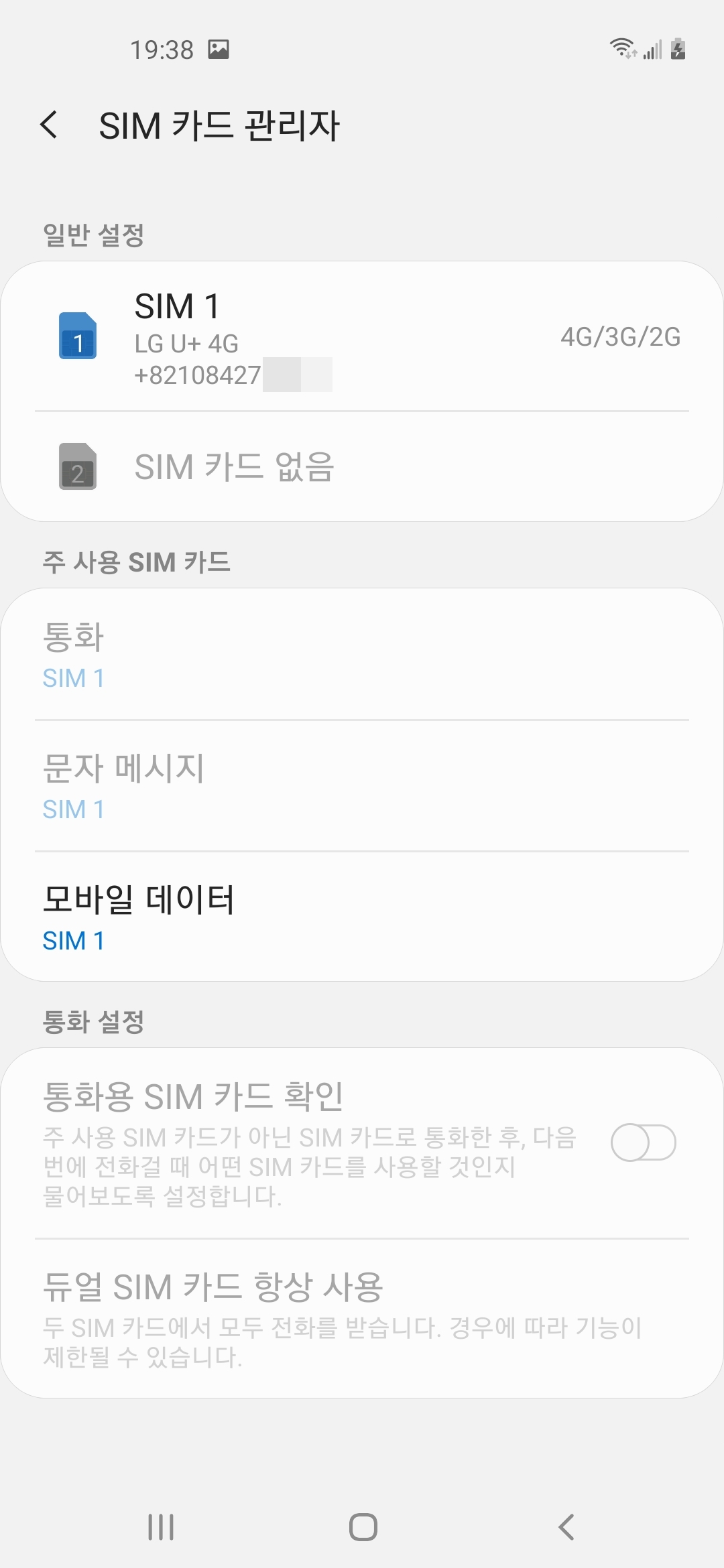 LG U+ 특별한 설정 없이 통화/SMS/MMS 잘됩니다.
