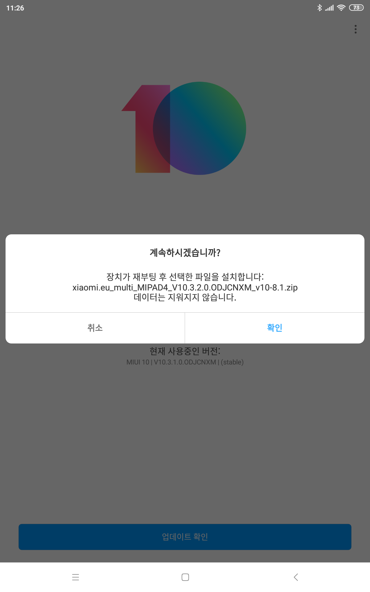 샤오미 스마트패드 미패드4P EU롬 정상적으로 업데이트 되었습니다.